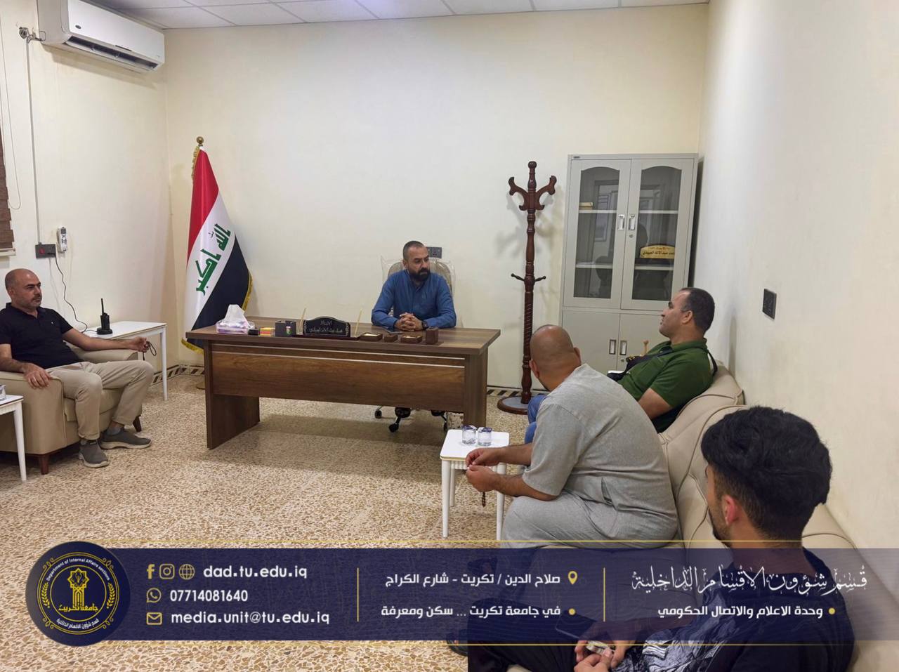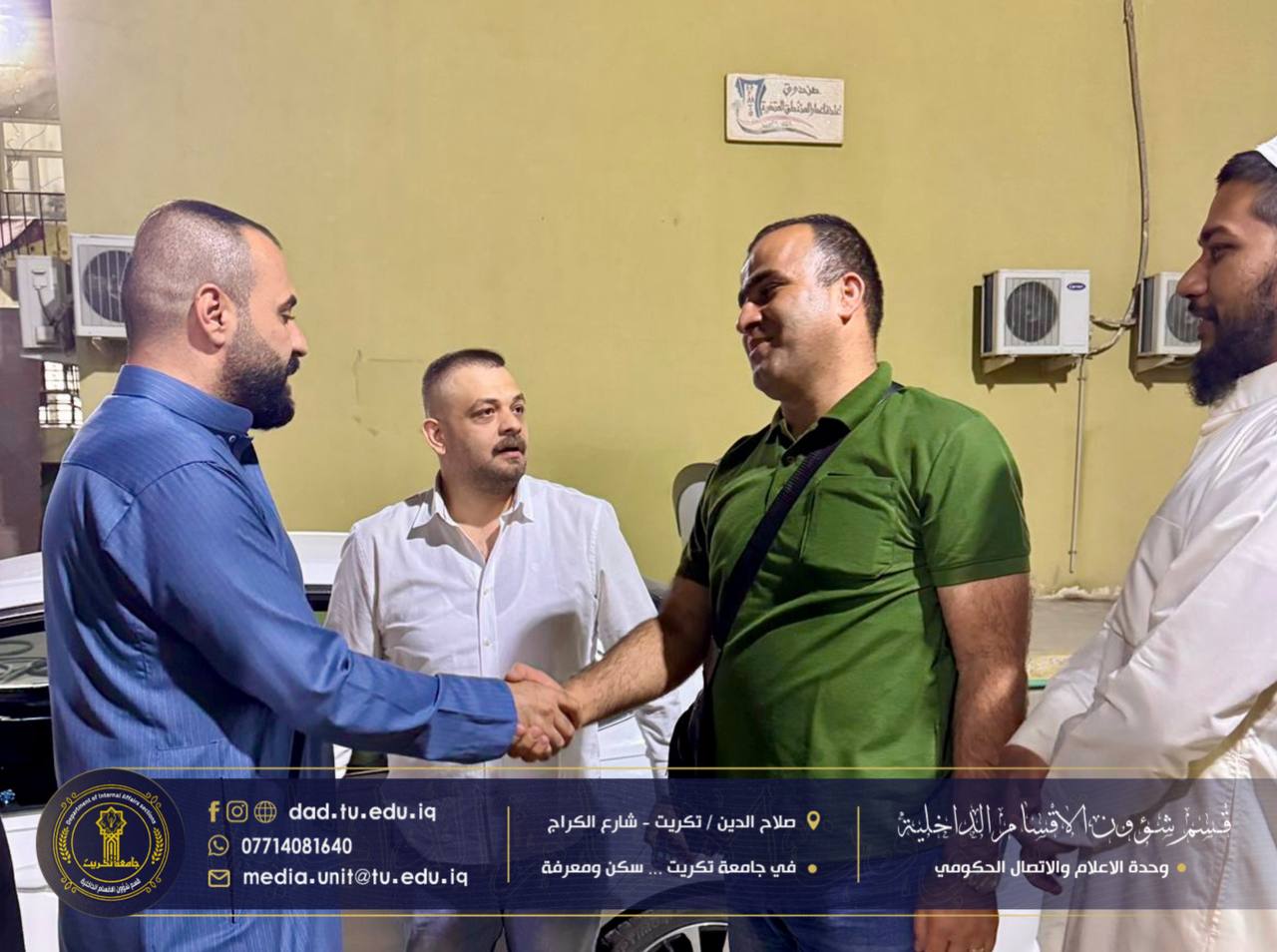 برعاية الاستاذ الدكتور وعد محمود رؤوف رئيس جامعة تكريت، وبمتابعة من الأستاذ الدكتور جاسم عباس علي، وبإشراف مباشر من السيد محمد عبدالاله مجيد أمين مجمع الأقواس، استقبل قسم شؤون الأقسام الداخلية الطالب علاء أحمد محمود من دولة فلسطين، أحد الطلبة المقبولين في كلية الإدارة والاقتصاد/ ماجستير إدارة الأعمال، ضمن مبادرة “ادرس في العراق” التي ترعاها وزارة التعليم العالي والبحث العلمي.