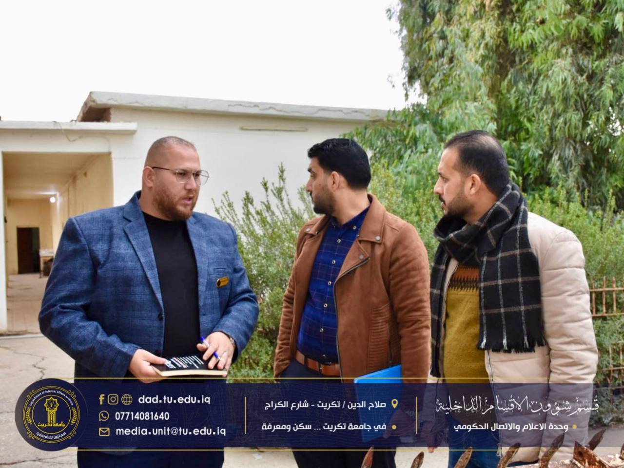 وضمّت اللجنة كلاً من الأستاذ المساعد الدكتور طه غافل عبدالله معاون مدير الأقسام الداخلية لشؤون الطلاب، والمهندس الحمزة وميض فارس مسؤول الوحدة الهندسية، حيث أجرت جولة ميدانية شاملة شملت الغرف السكنية والبنى التحتية.