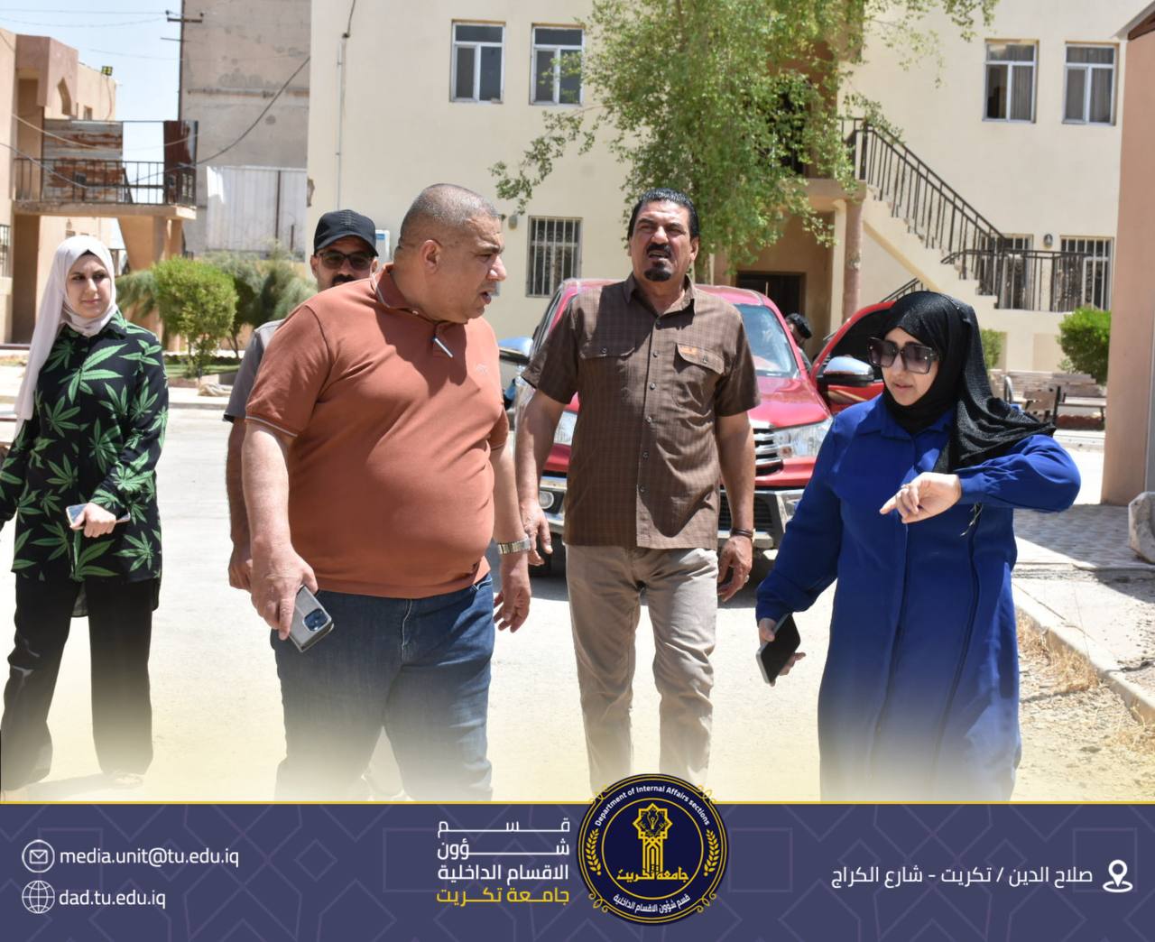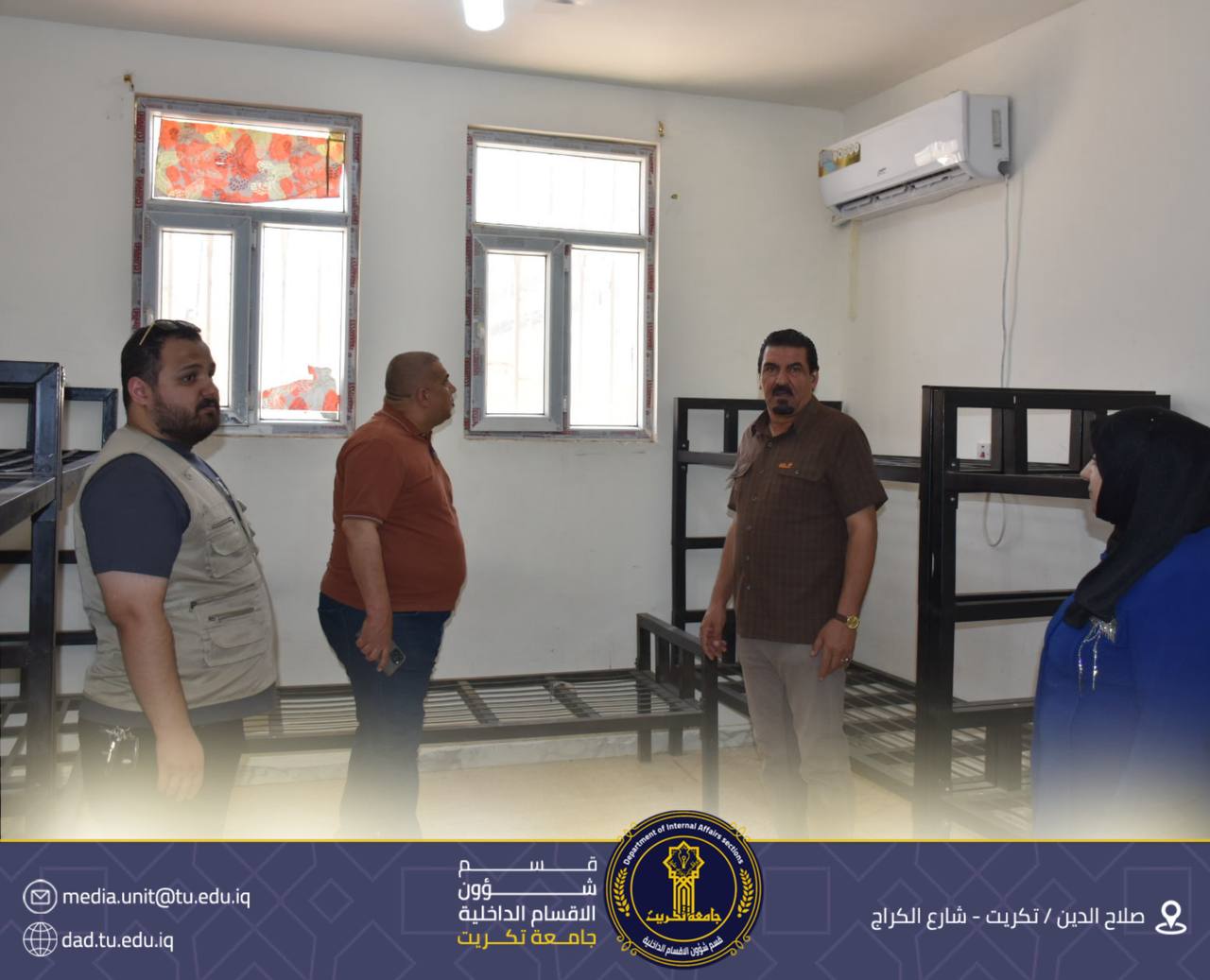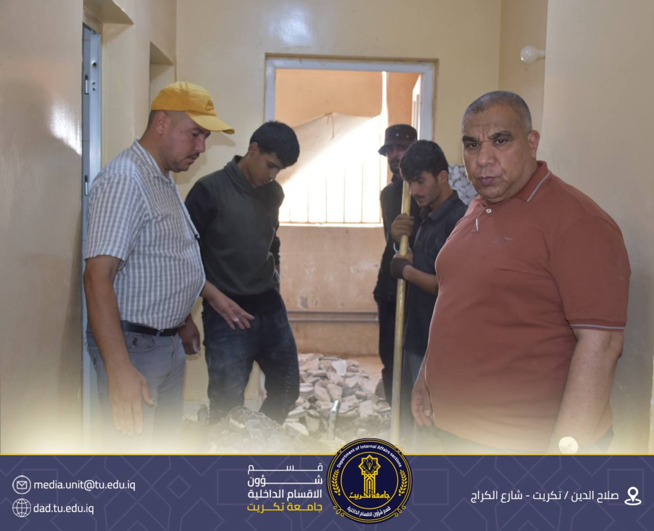 تطبيقاً لتوجيهات الاستاذ الدكتور وعد محمود رؤوف رئيس جامعة تكريت المحترم، واصل الأستاذ الدكتور جاسم عباس علي مدير قسم شؤون الأقسام الداخلية في جامعة تكريت، اليوم، جولاته الميدانية لمتابعة سير أعمال التأهيل الصيفي في مجمع الطبية للطالبات – قسم (4)، وذلك في إطار خطة القسم لتهيئة المباني والمرافق السكنية استعدادًا لاستقبال الطالبات مع بداية العام الدراسي الجديد.