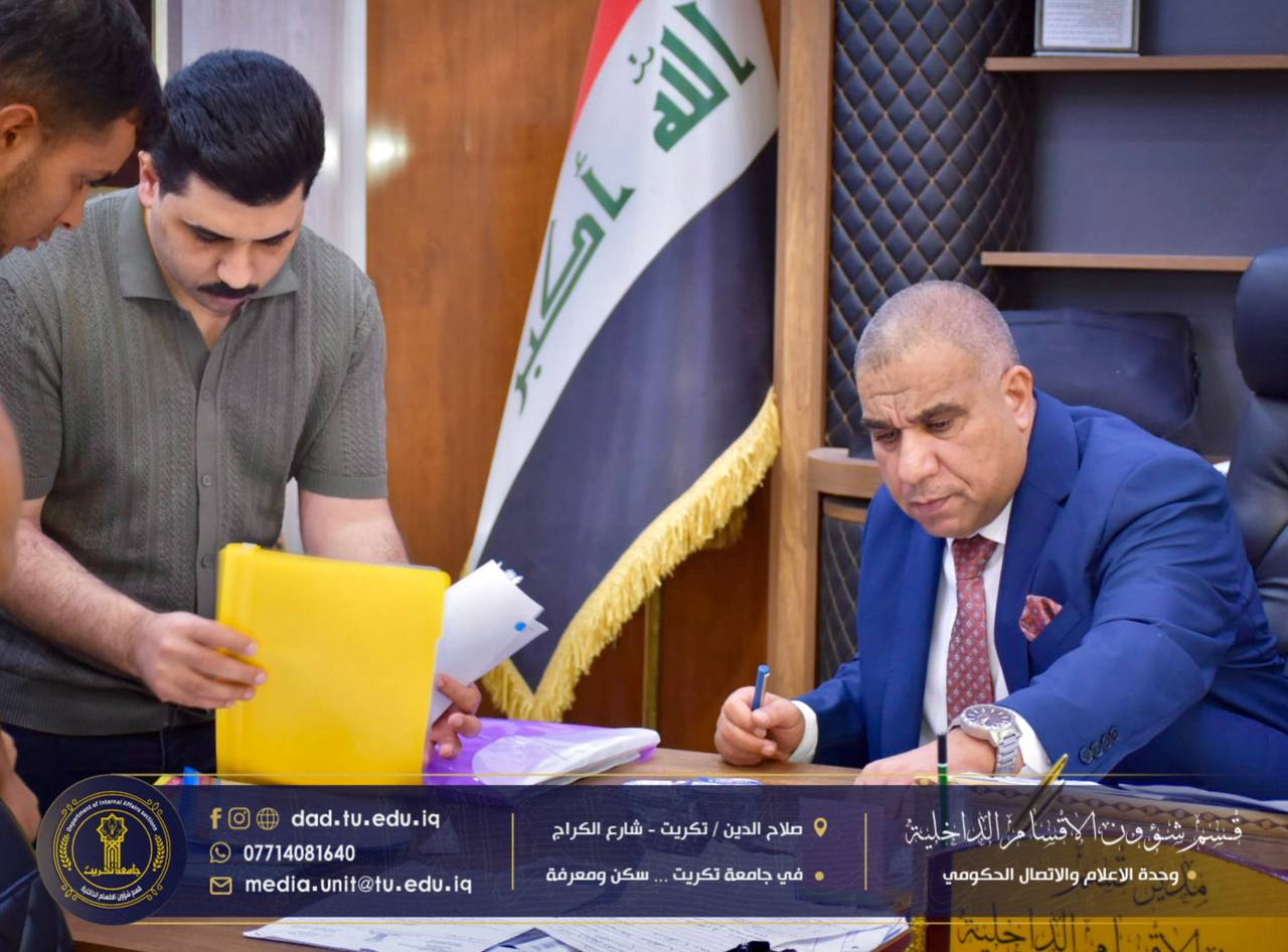 باشر الأستاذ الدكتور جاسم عباس علي مدير قسم شؤون الأقسام الداخلية في مكتبه إستقبال الطلبة والمراجعين والاستماع إلى احتياجاتهم ومشكلاتهم بشكل مباشر، في إطار تعزيز التواصل وتسهيل الإجراءات الخدمية.