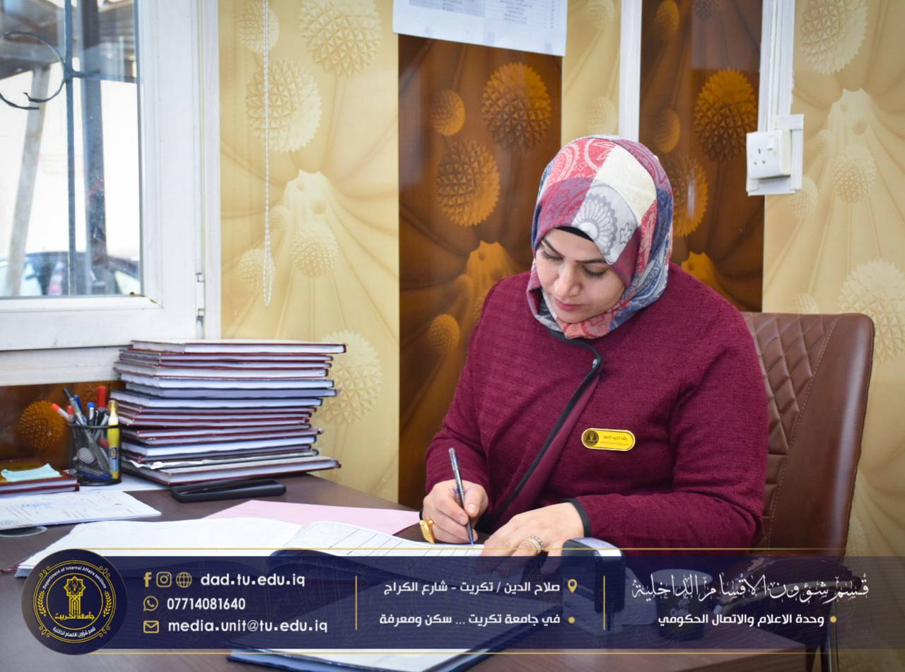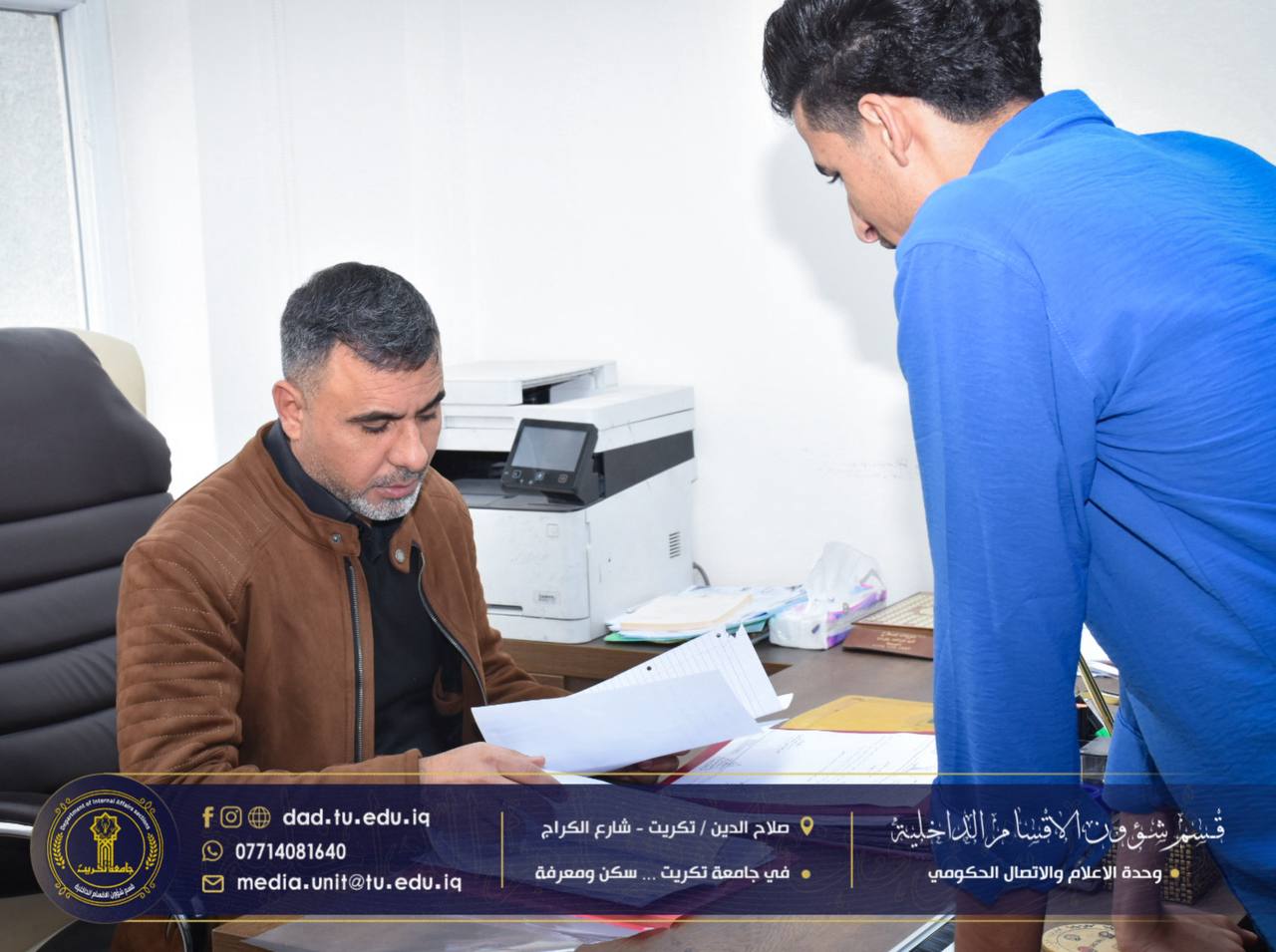 وشملت الجولة الاطلاع على آلية سير العمل اليومي، ومتابعة الالتزام بالضوابط والتعليمات الإدارية، فضلاً عن الوقوف على احتياجات الشعب والوحدات والمعوقات التي قد تواجه أداء مهامها، والعمل على معالجتها بما ينسجم مع توجيهات رئاسة الجامعة وخطط القسم المعتمدة.