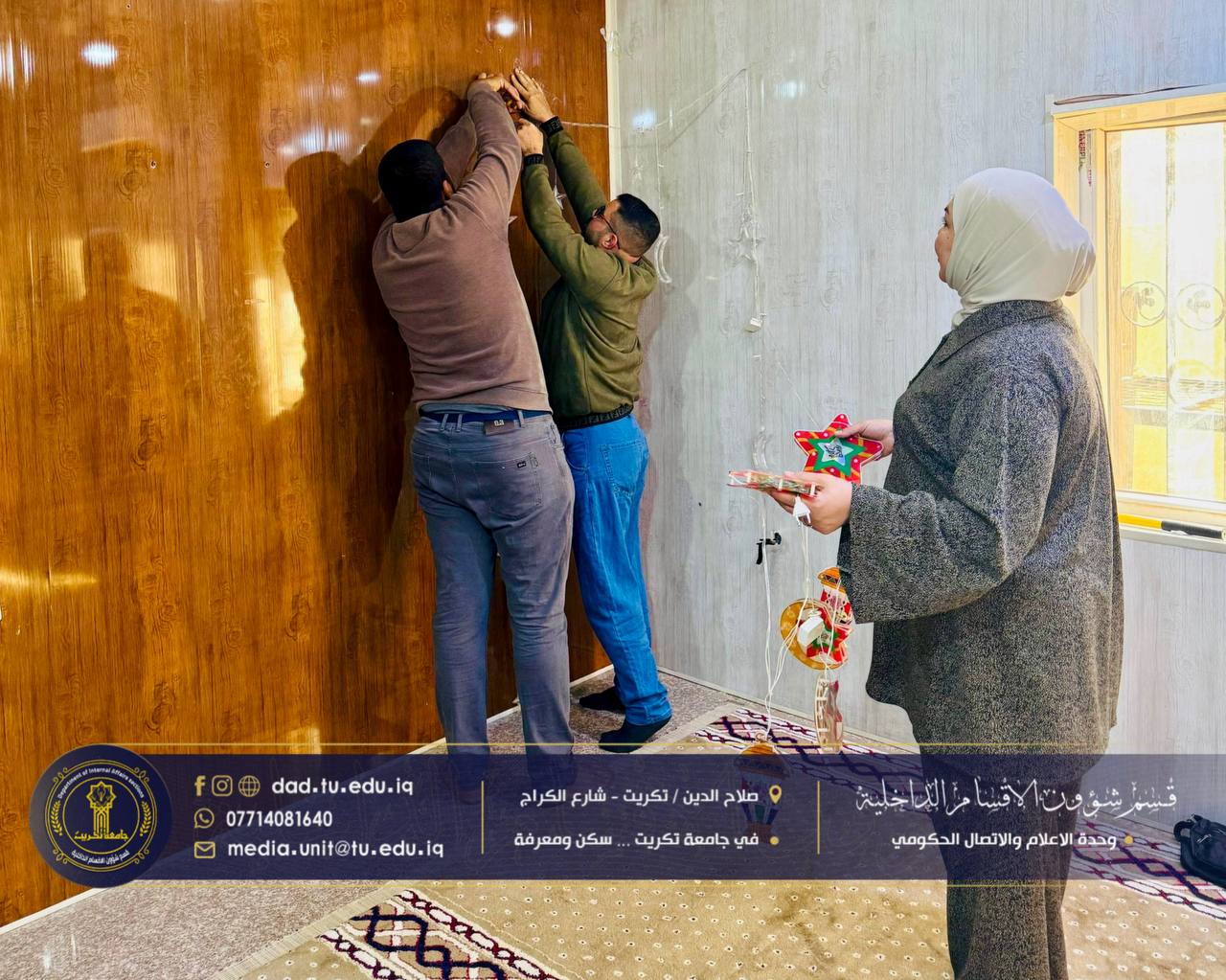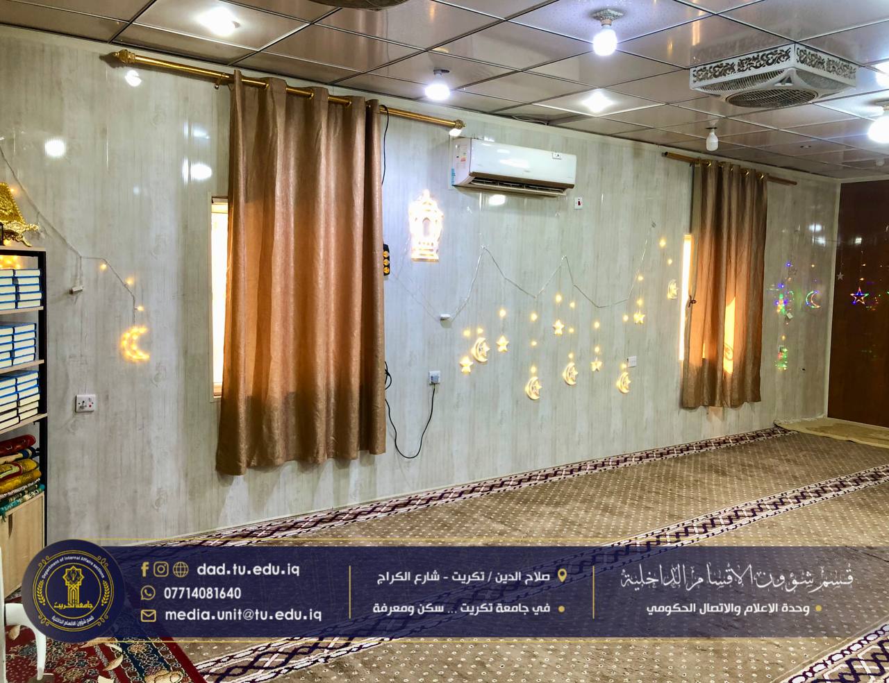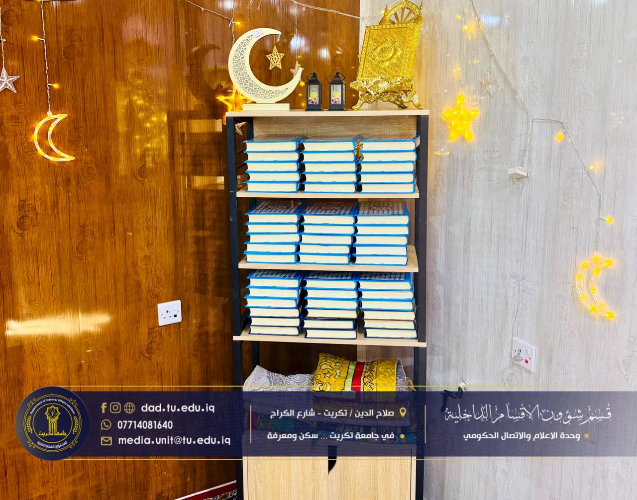 باشرت شعبة البحث الاجتماعي أعمالها الخدمية والإنسانية في إطار الاستعدادات لشهر رمضان المبارك، حيث أكملت الشعبة متمثلة بالباحثة نغم عبدالرزاق تجهيز المصلى الخاص بالطالبات في قسم (4) للطالبات (الطبية والتربية بنات)، وذلك ضمن الجهود المبذولة لتهيئة الأجواء الإيمانية المناسبة داخل المجمعات السكنية.