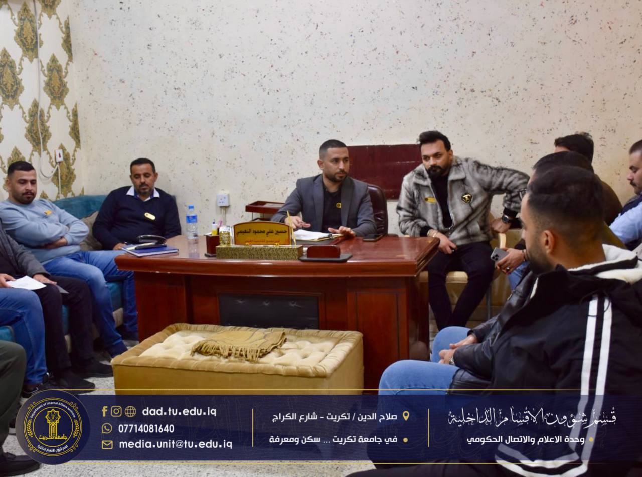 وتناول الاجتماع جملة من المحاور المهمة، من بينها متابعة الواقع الإشرافي اليومي، وآليات تعزيز التواصل بين المشرفين والطلبة، فضلاً عن مناقشة أبرز الملاحظات والمعوقات التي تواجه سير العمل داخل المجمع، مع التأكيد على ضرورة الالتزام بالتعليمات والضوابط المعتمدة بما يسهم في توفير بيئة سكنية مناسبة للطلبة.