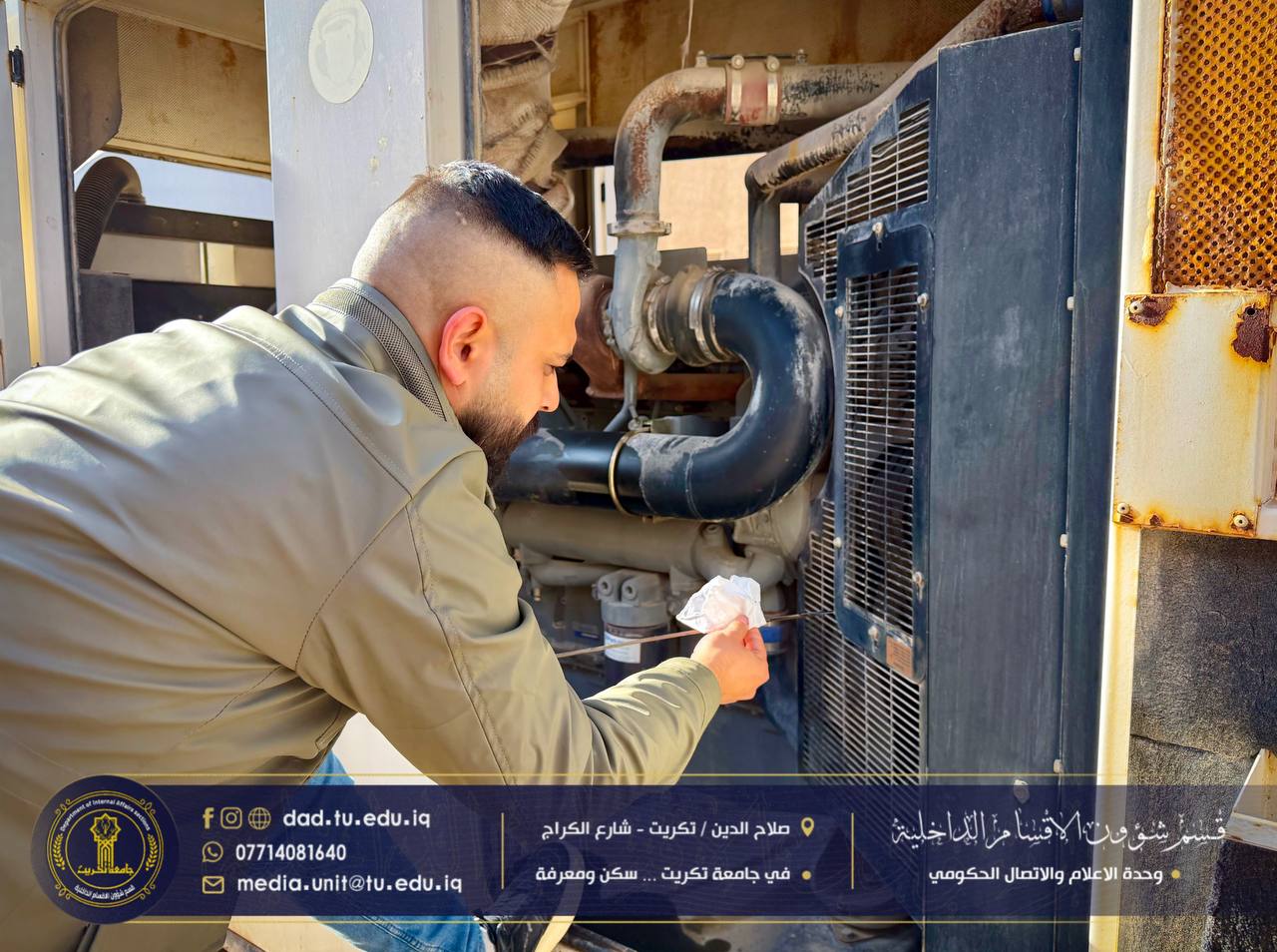 تواصل وحدة المولدات التابعة لشعبة الصيانة جهودها الحثيثة في متابعة تشغيل وصيانة المولدات الكهربائية في مختلف المجمعات السكنية، وبإشراف مباشر من مسؤول الشعبة السيد -همام نزهان محمد- وذلك لضمان استمرارية التيار الكهربائي وتوفير بيئة خدمية مستقرة للطلبة.