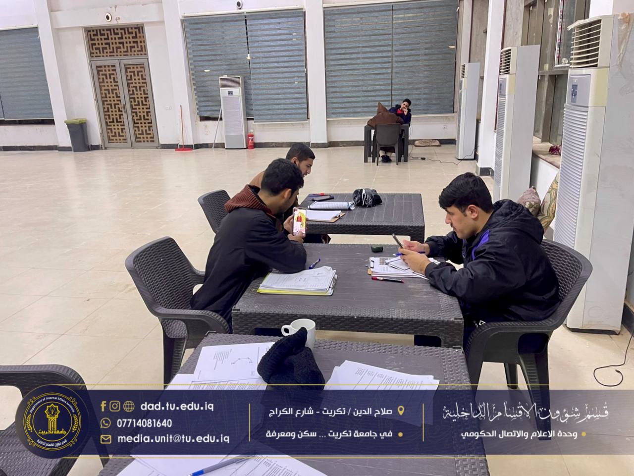 ضمن إطار المتابعة الميدانية المستمرة وحرص إدارة الأقسام الداخلية على دعم المسيرة الدراسية للطلبة، أُجريت جولة مسائية في قاعة المطالعة بمجمع الطلاب النموذجي تزامناً مع قرب انطلاق امتحانات الكورس الأول.