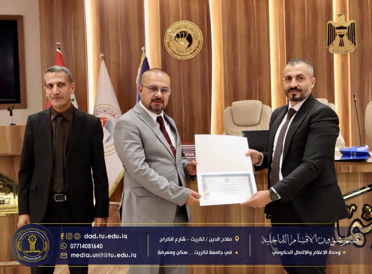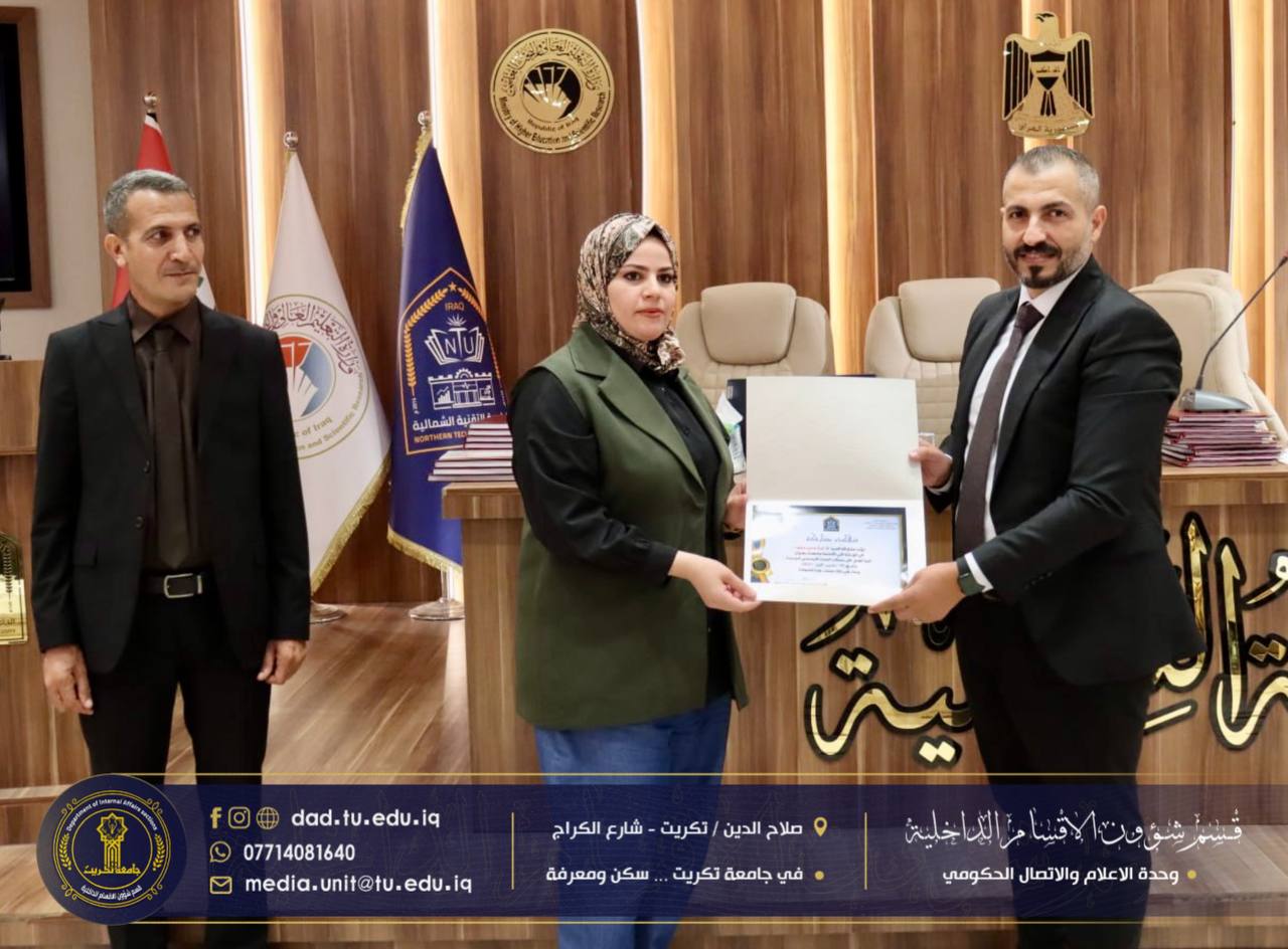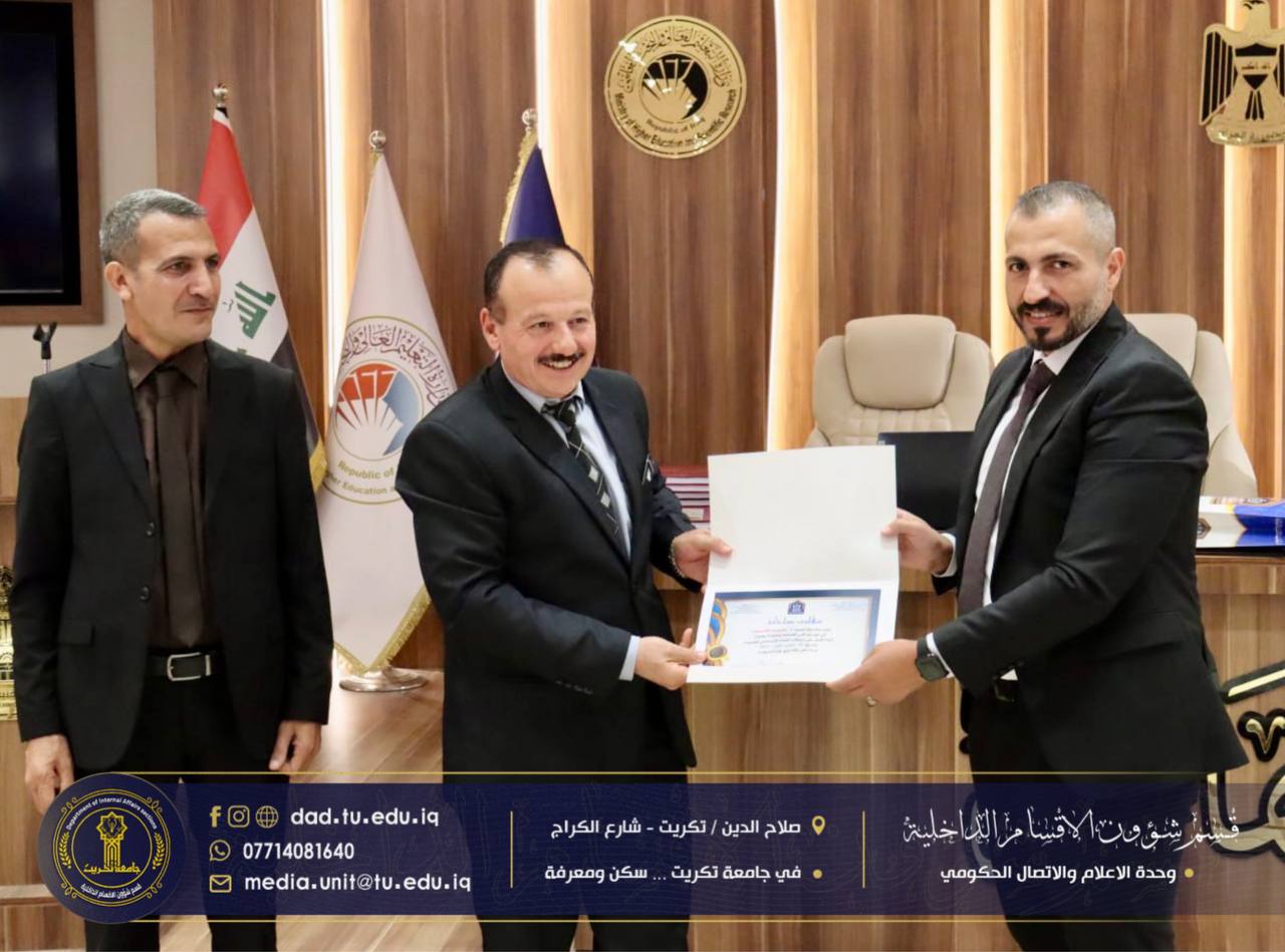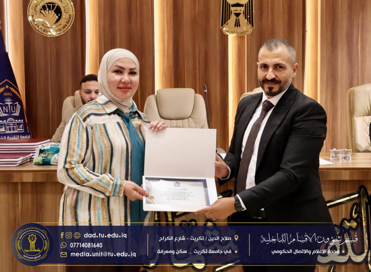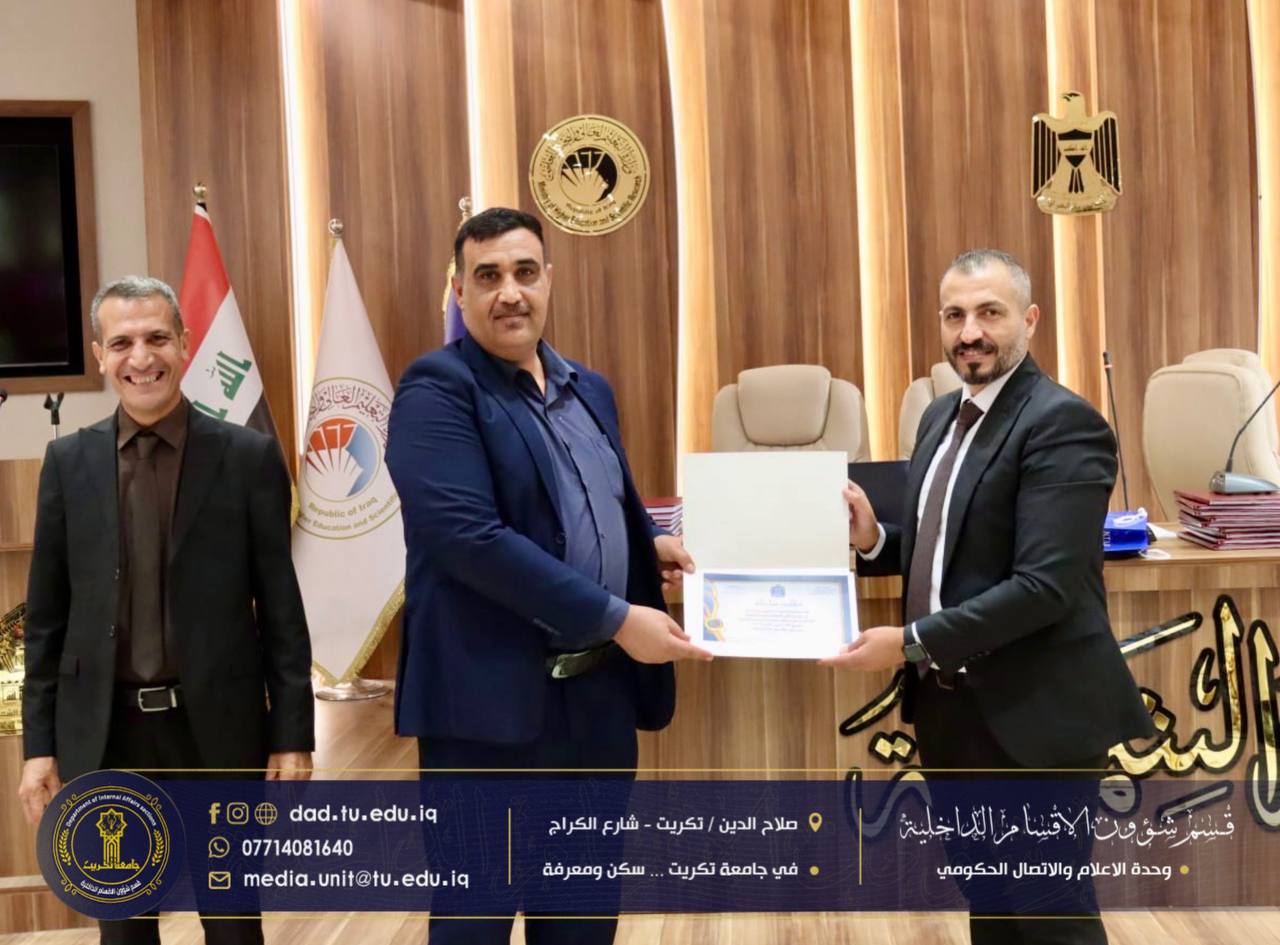 تكريم كادر شعبة البحث الاجتماعي بجامعة تكريت بجائزة التميّز على مستوى الجامعات العراقية