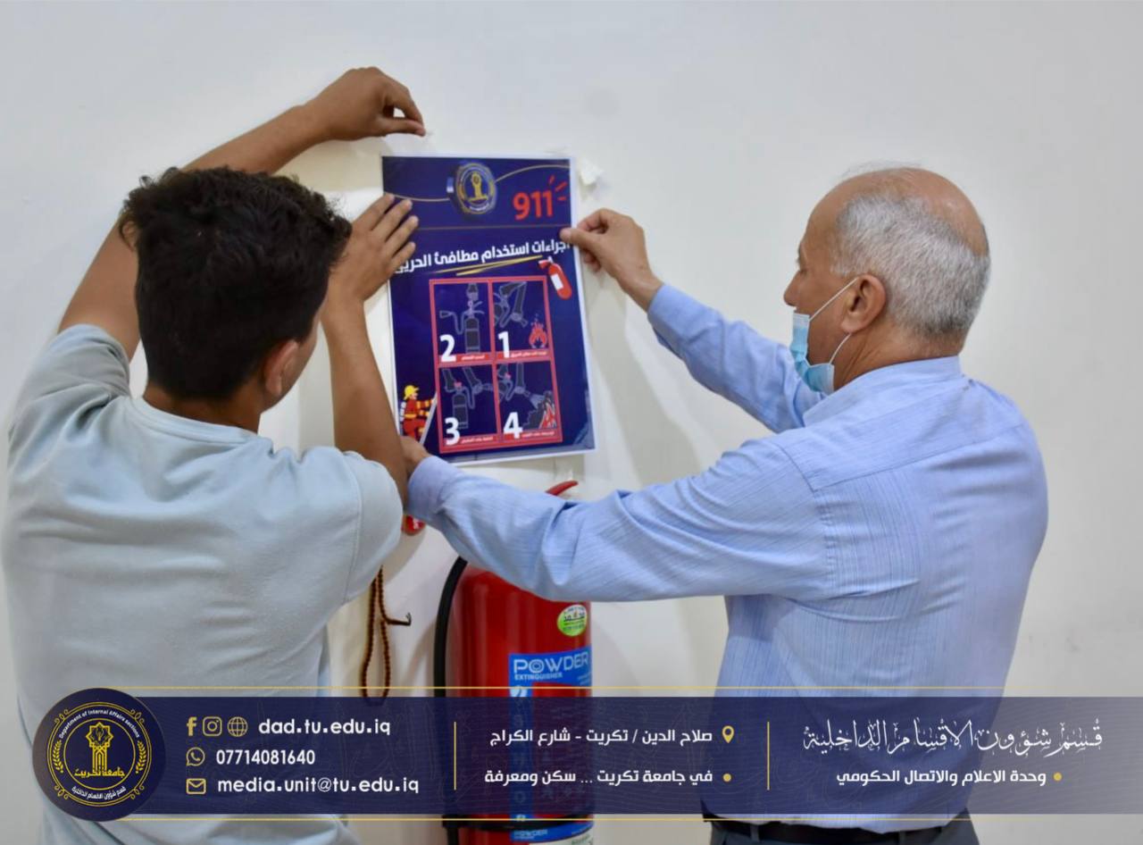 الدفاع المدني يباشر توزيع تعليمات الإطفاء والطوارئ في الأقسام الداخلية