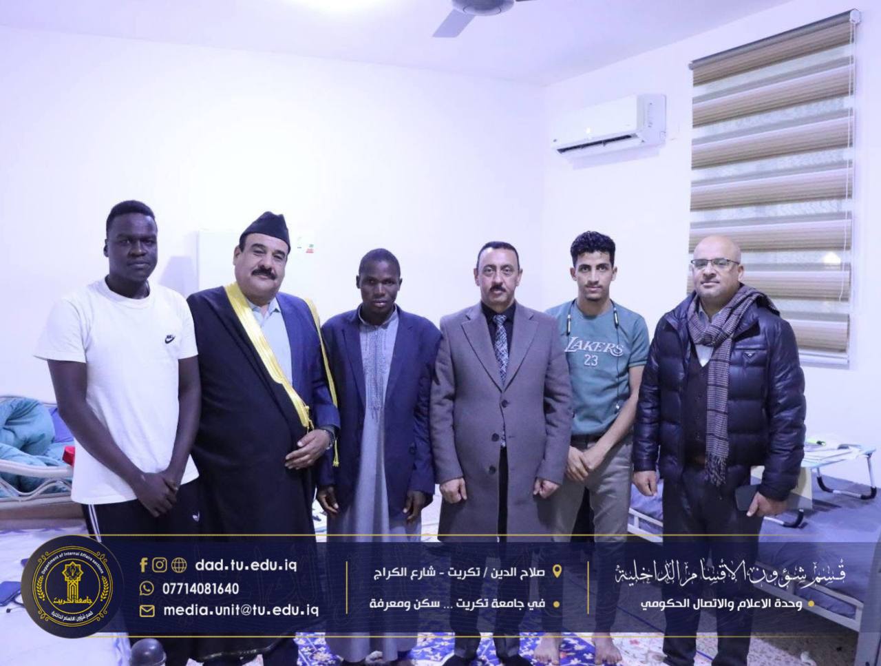 في إطار الحرص على متابعة أوضاع الطلبة والاطلاع المباشر على مستوى الخدمات المقدمة لهم، أجرى السيد عميد كلية التربية للعلوم الإنسانية الأستاذ الدكتور عماد حميد أحمد، يرافقه السيد معاون العميد للشؤون الإدارية الأستاذ الدكتور عادل صالح علاوي، والسيد معاون العميد لشؤون الطلبة الأستاذ الدكتور مثنى مشعان خلف، مساء يوم الاثنين الموافق (19/1/2026)، زيارة تفقدية إلى مجمع الاقواس في الأقسام الداخلية.