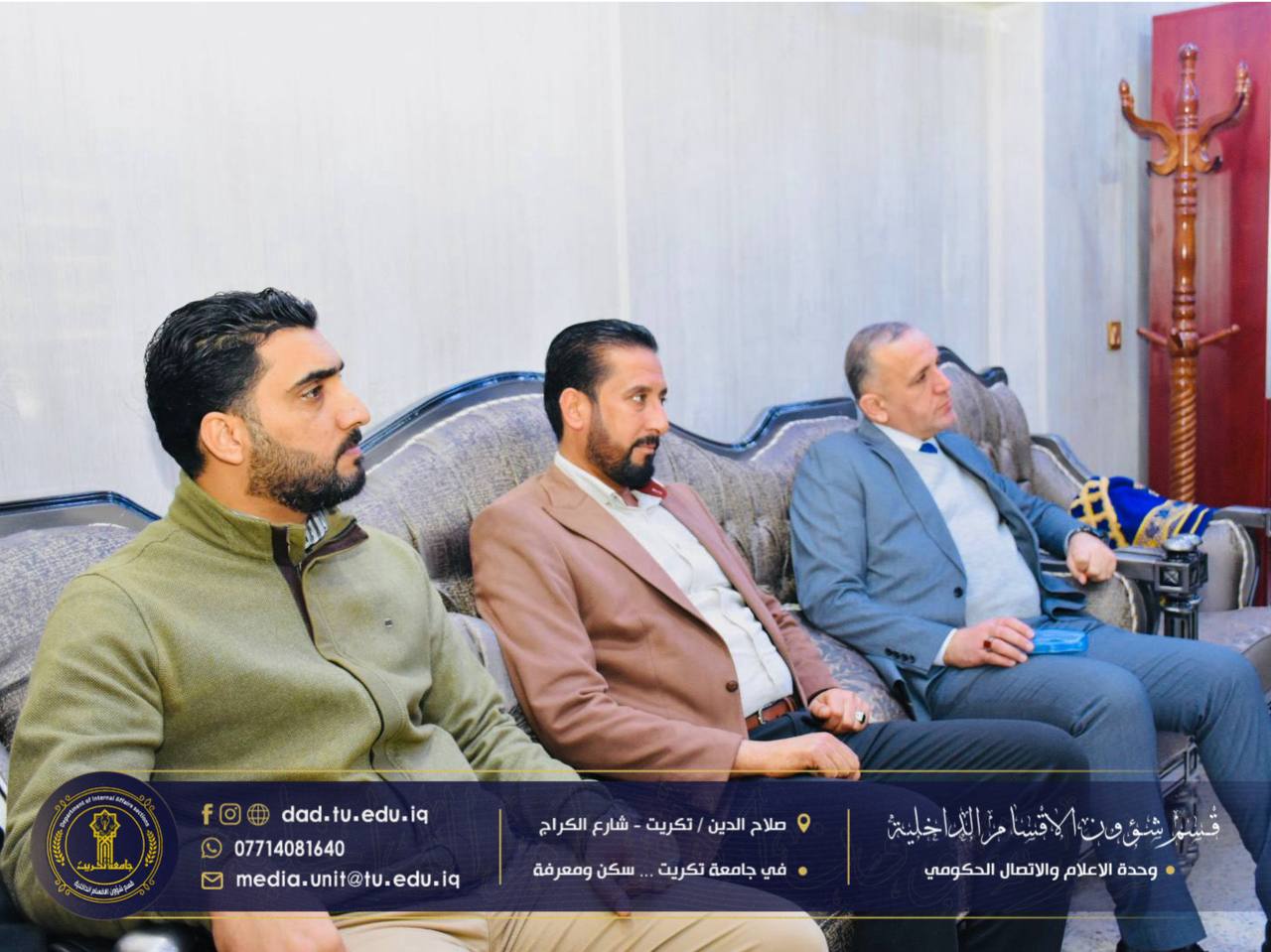 وكان في استقبال اللجنة الأستاذ الدكتور جاسم عباس علي مدير قسم شؤون الأقسام الداخلية في جامعة تكريت، والأستاذ المساعد الدكتور طه غافل عبدالله معاون مدير قسم شؤون الأقسام الداخلية لشؤون الطلاب، إلى جانب عدد من مسؤولي الشعب والوحدات الإدارية.