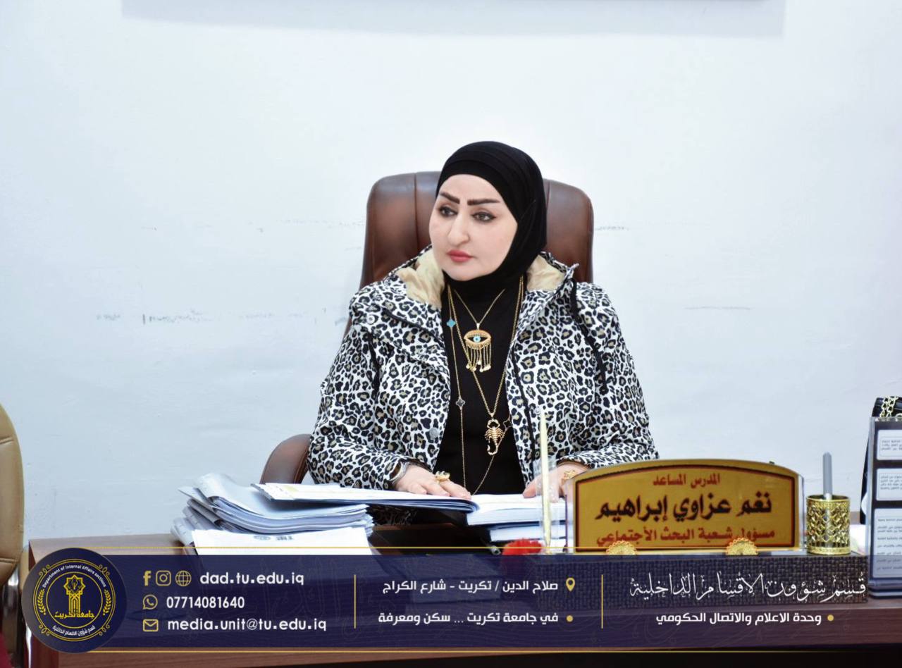 عقدت شعبة البحث الاجتماعي في قسم شؤون الأقسام الداخلية اجتماعاً لباحثيها، بحضور مسؤولة الشعبة السيدة نغم عزاوي إبراهيم، وذلك لمناقشة آليات العمل ومتابعة الواقع الاجتماعي والنفسي للطلبة الساكنين في المجمعات السكنية.