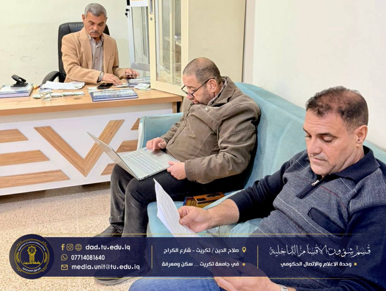 في إطار الحرص على تعزيز الانضباط الإداري وتنظيم العمل داخل المجمعات السكنية، يواصل مجمع القادسية القاطع الشمالي إجراءات إصدار هويات طلبة الأقسام الداخلية للطلبة، إلى جانب ترتيب وتنظيم السجلات الخاصة بهم، بما يسهم في تسهيل الإجراءات الإدارية وضمان دقة البيانات.