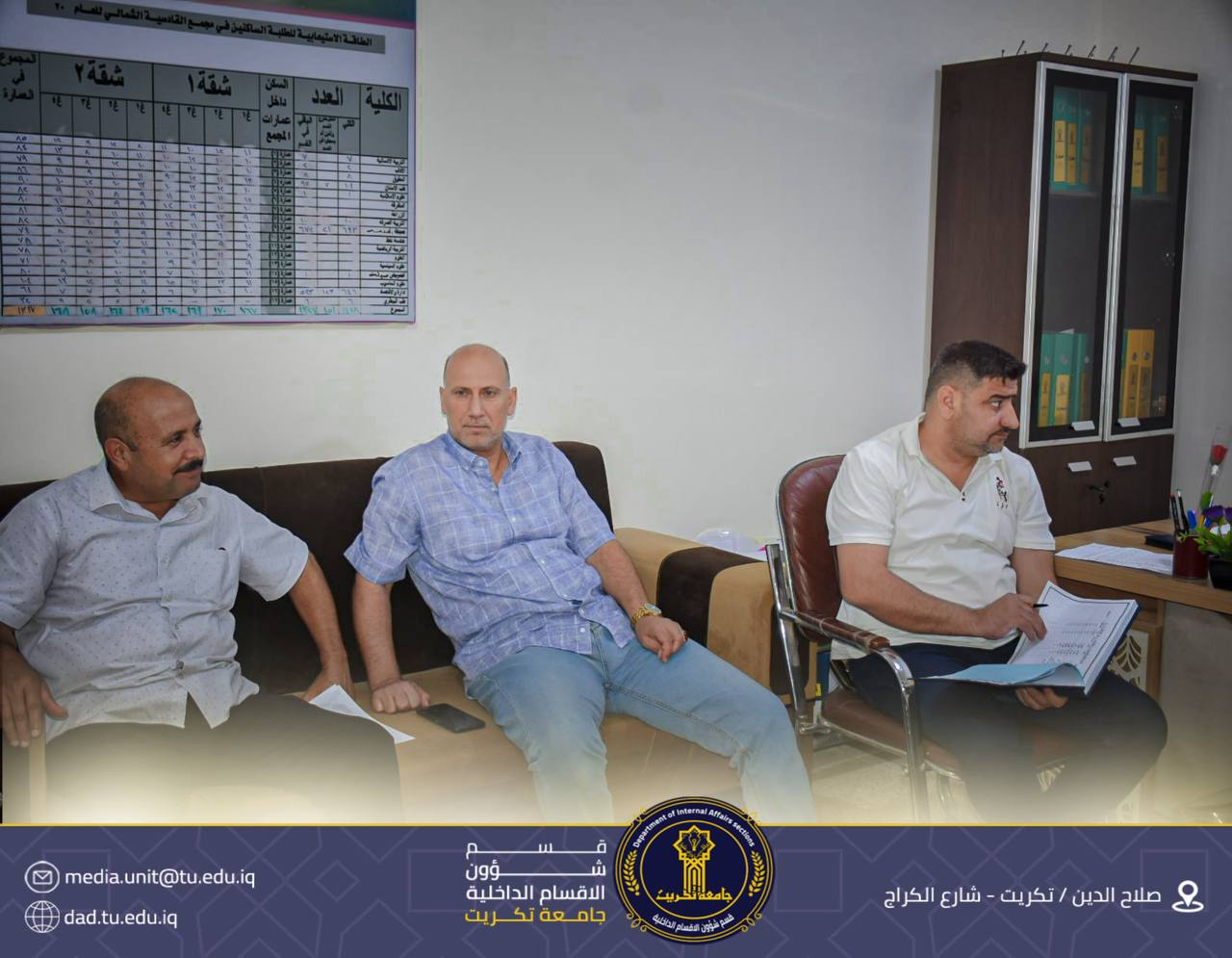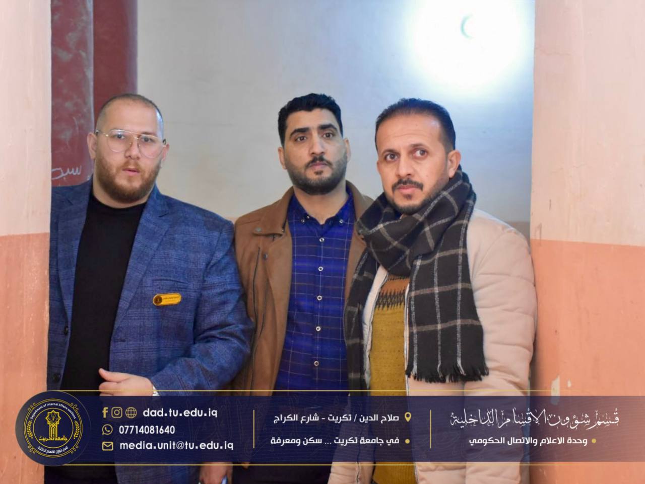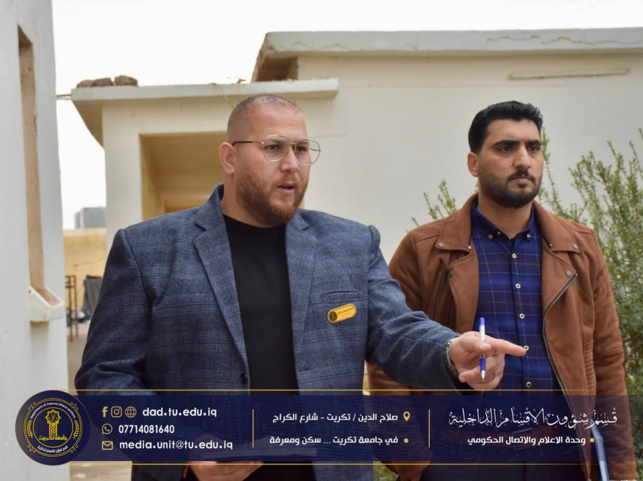 وضمّت اللجنة كلاً من الأستاذ المساعد الدكتور طه غافل عبدالله معاون مدير الأقسام الداخلية لشؤون الطلاب، والمهندس الحمزة وميض فارس مسؤول الوحدة الهندسية، حيث أجرت جولة ميدانية شاملة شملت الغرف السكنية والبنى التحتية.