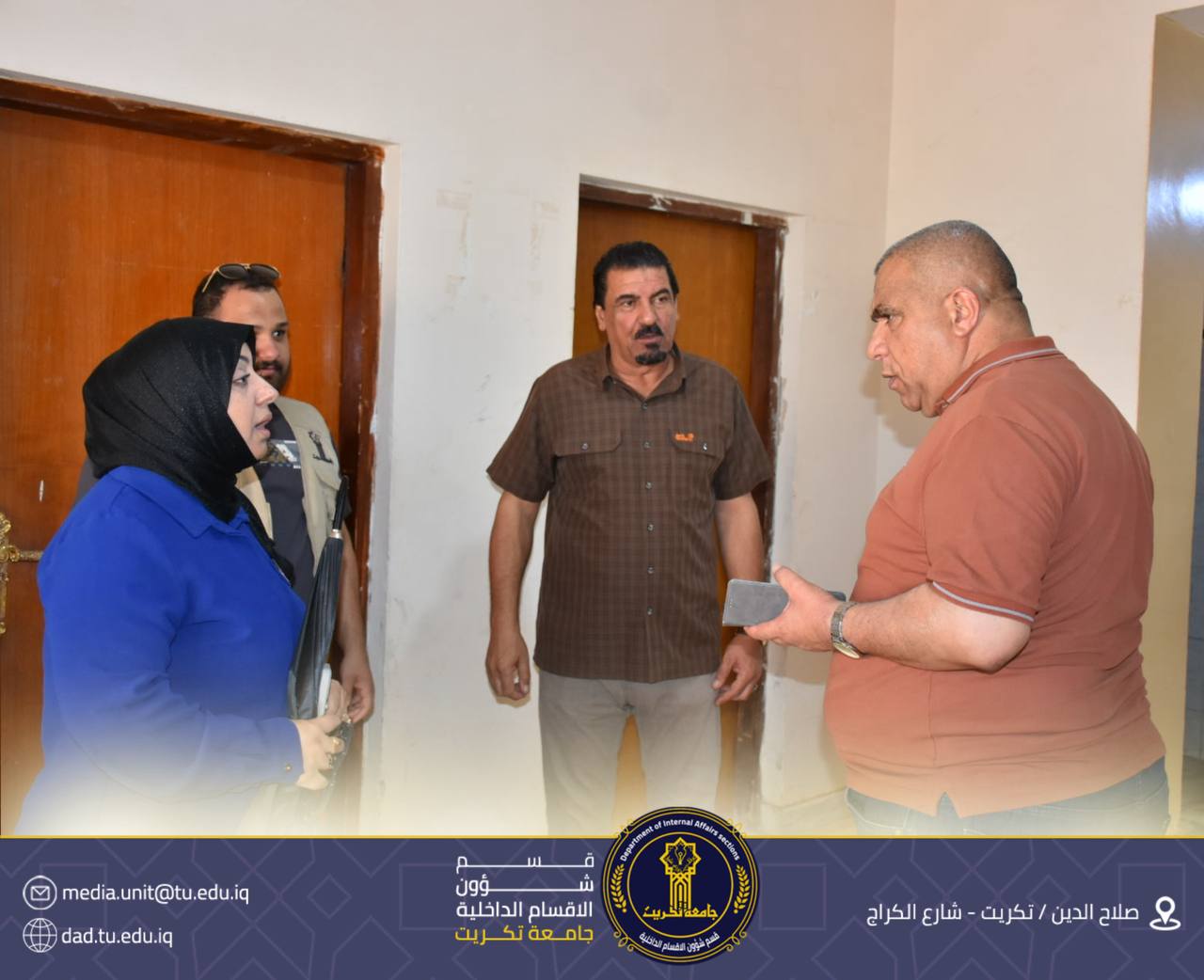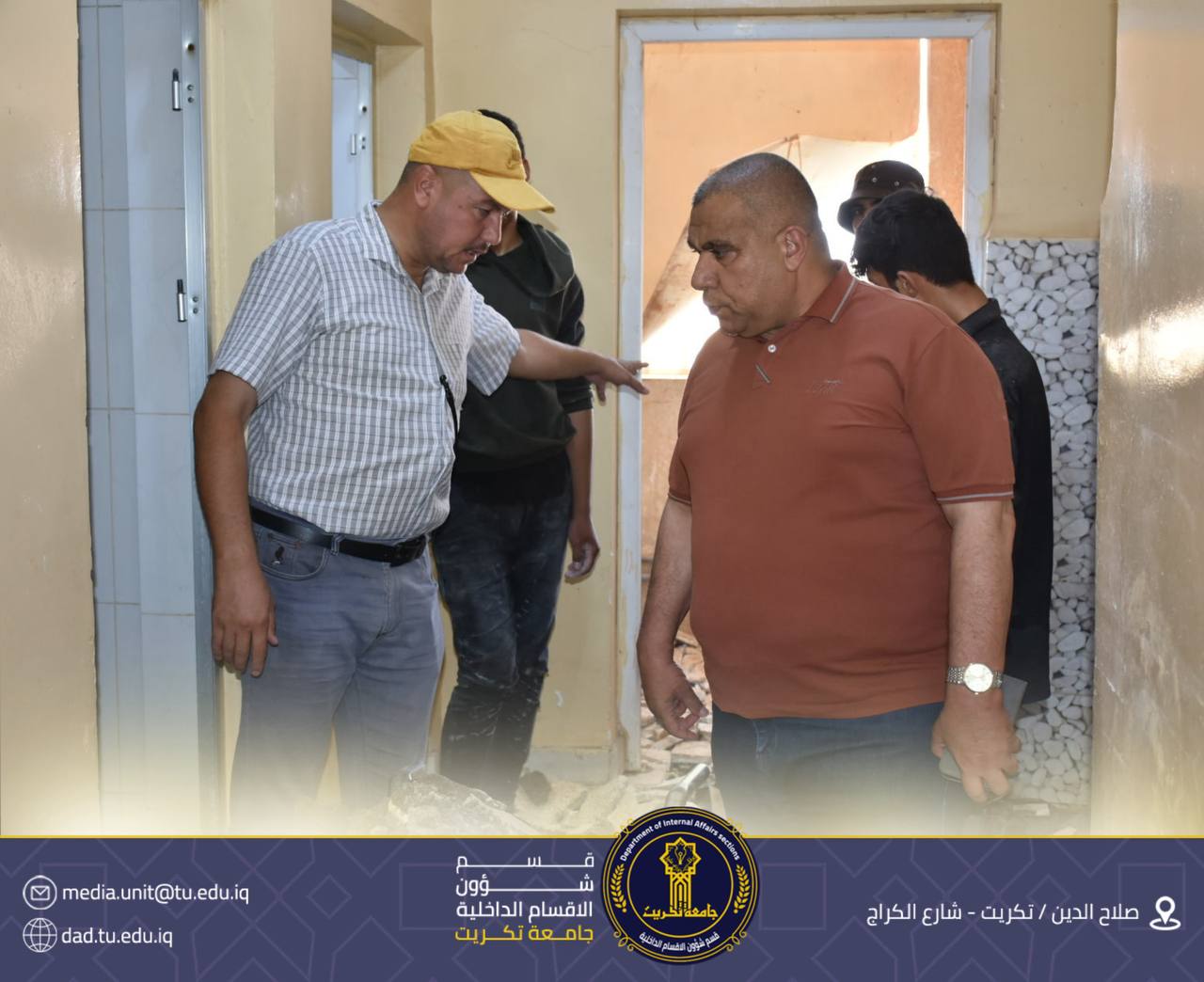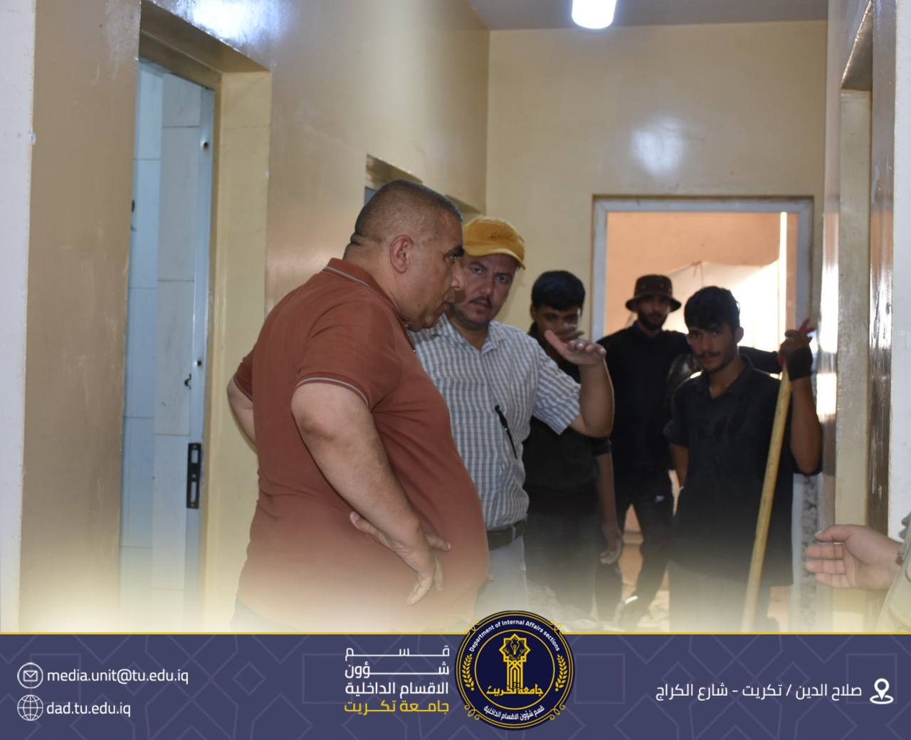 تطبيقاً لتوجيهات الاستاذ الدكتور وعد محمود رؤوف رئيس جامعة تكريت المحترم، واصل الأستاذ الدكتور جاسم عباس علي مدير قسم شؤون الأقسام الداخلية في جامعة تكريت، اليوم، جولاته الميدانية لمتابعة سير أعمال التأهيل الصيفي في مجمع الطبية للطالبات – قسم (4)، وذلك في إطار خطة القسم لتهيئة المباني والمرافق السكنية استعدادًا لاستقبال الطالبات مع بداية العام الدراسي الجديد.