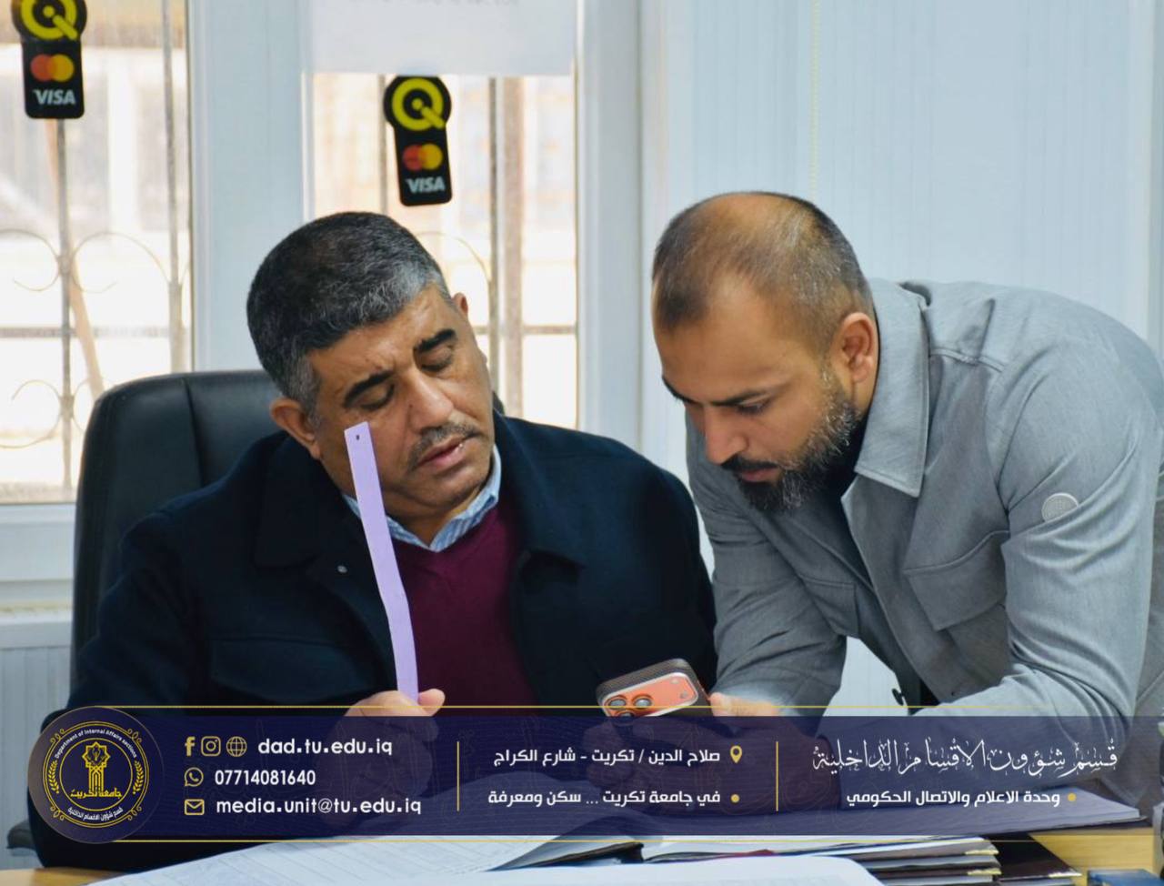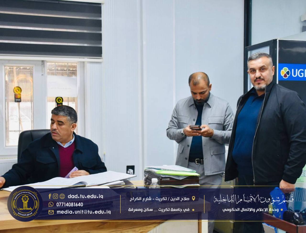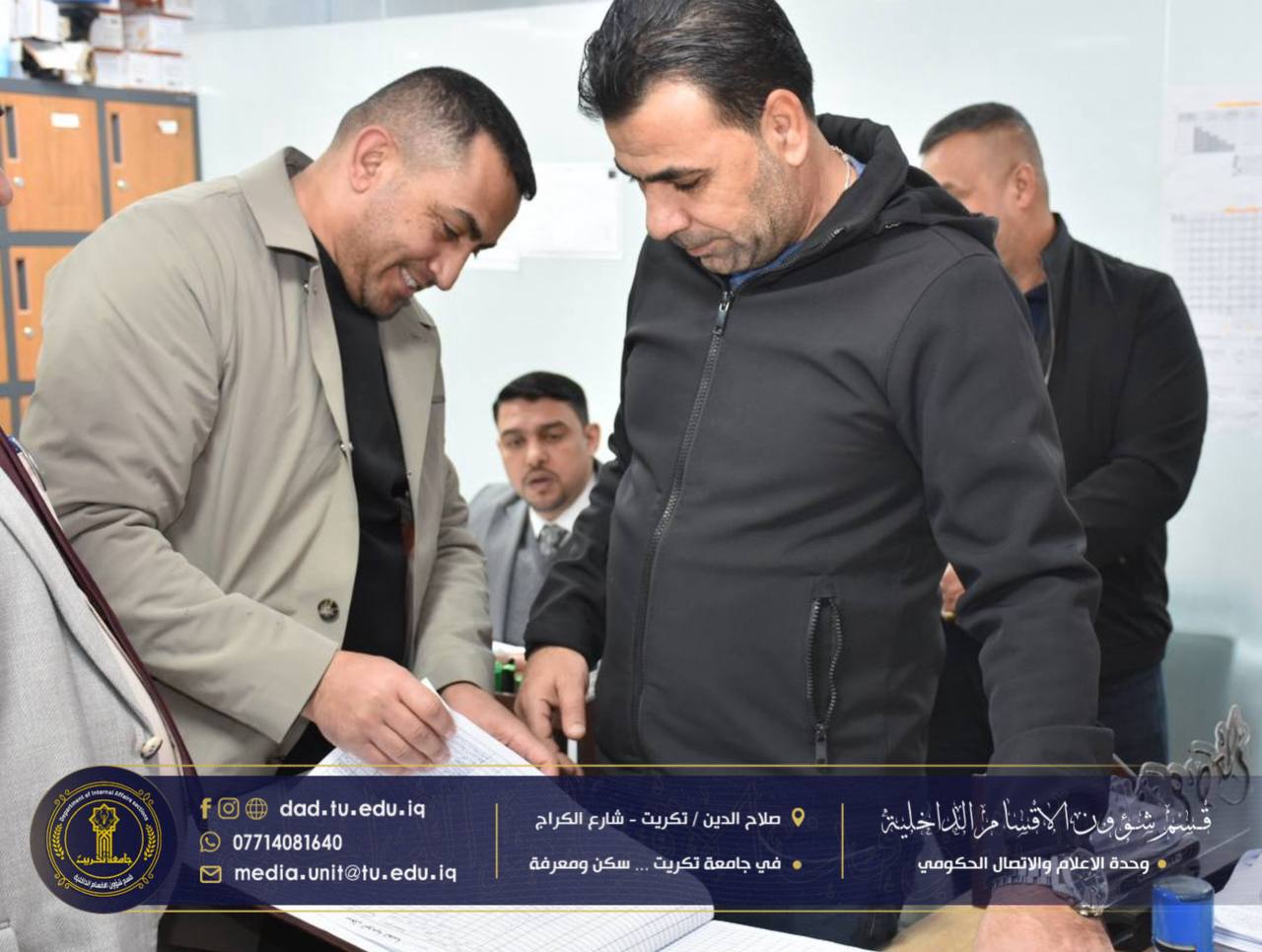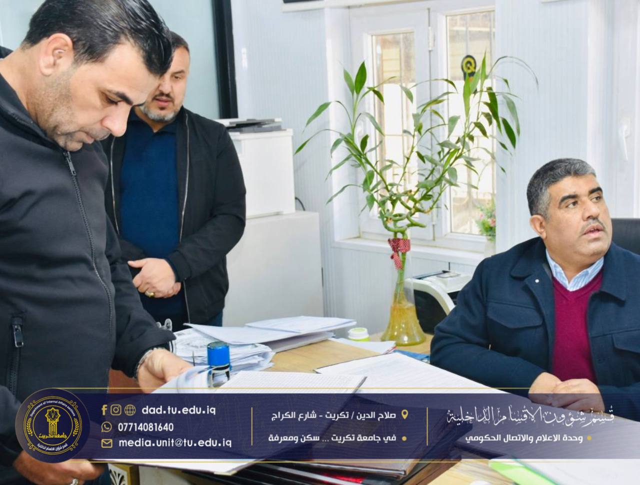 في إطار حرص رئاسة الجامعة على تعزيز مبادئ الشفافية والرقابة الإدارية والمالية، زارت لجنة مركزية من رئاسة الجامعة الأقسام الداخلية، لغرض التدقيق والمتابعة والاطلاع على سير العمل الإداري والمالي.