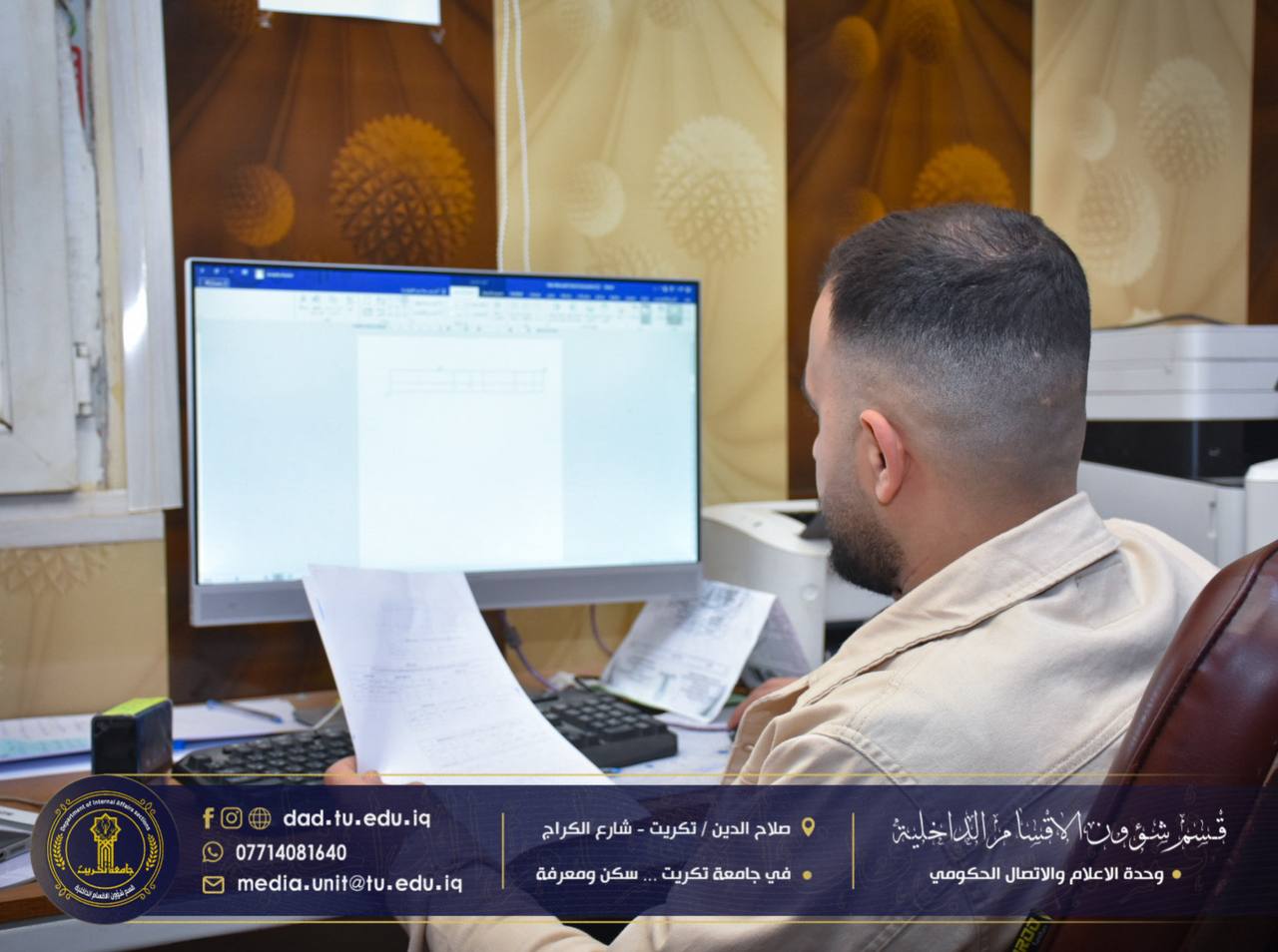 أجرى كادر الإعلام في قسم شؤون الأقسام الداخلية جولة صباحية لمتابعة الواقع الإداري في الشعب والوحدات التابعة للقسم، وذلك ضمن إطار الحرص على تعزيز الأداء المؤسسي والارتقاء بمستوى العمل الإداري والخدمي.