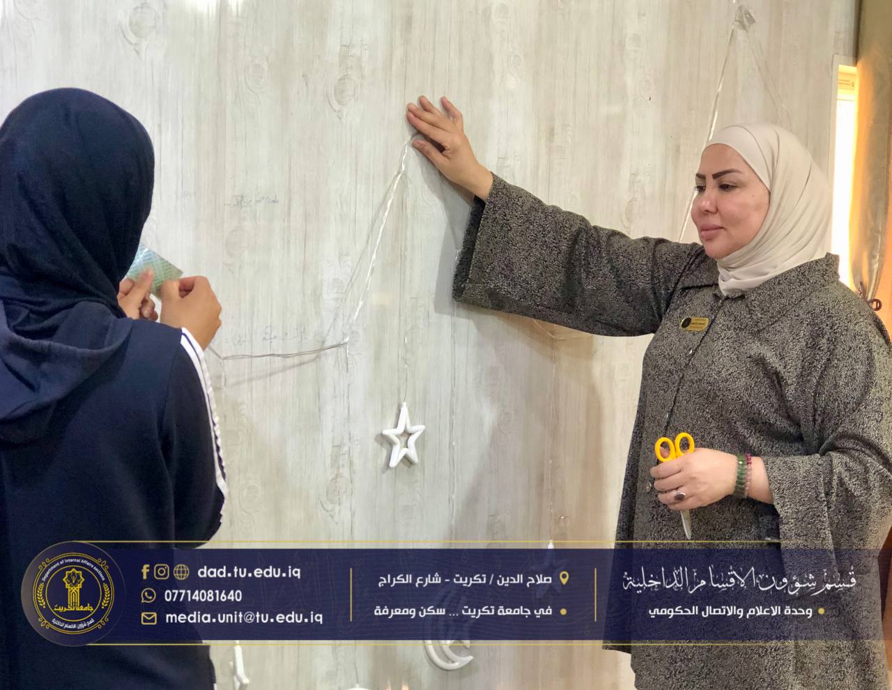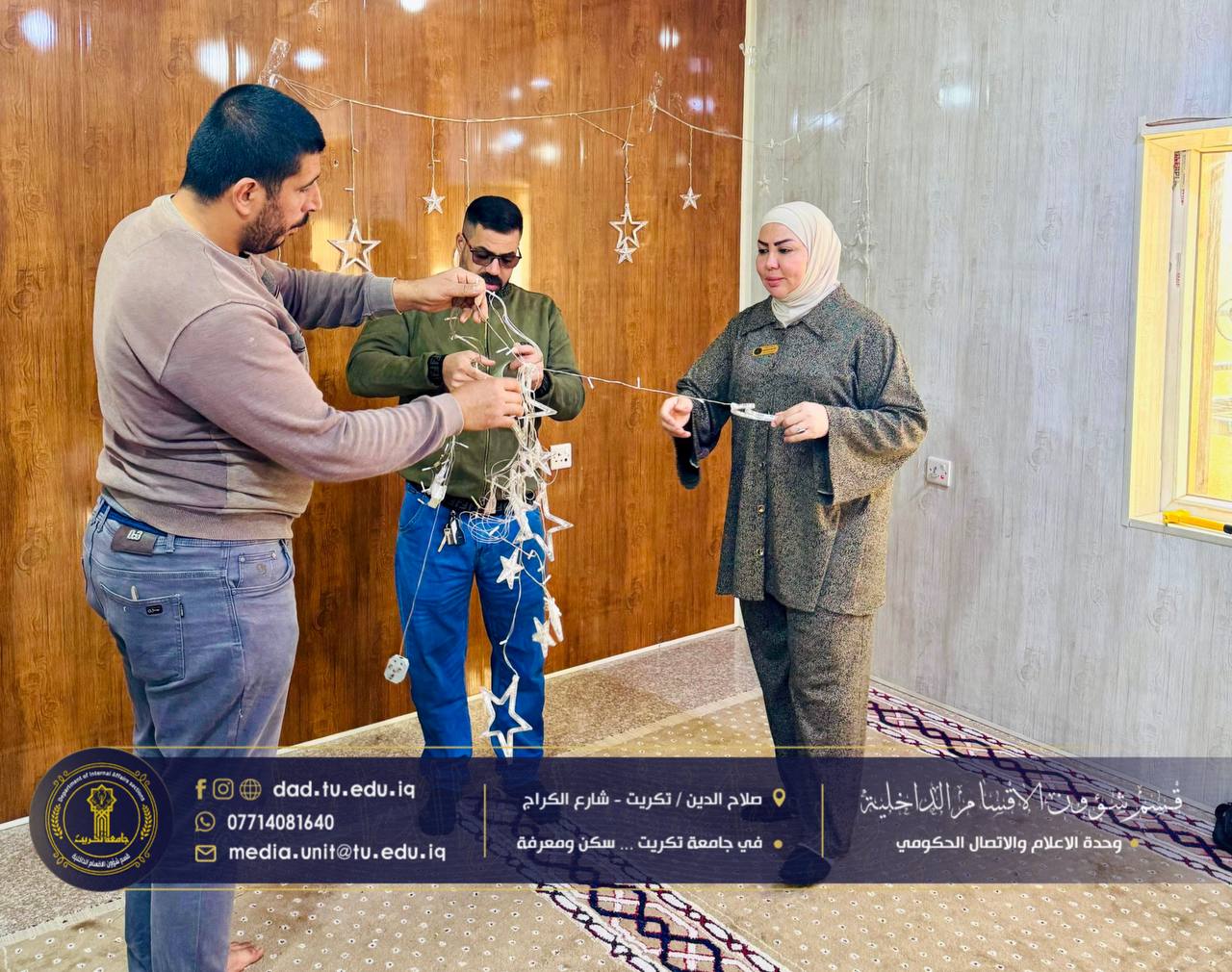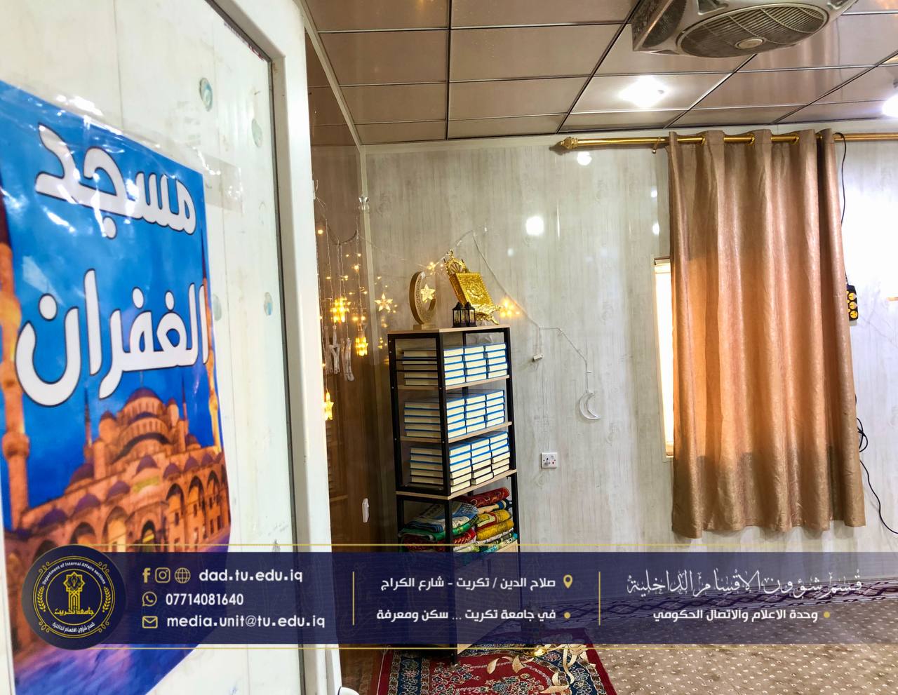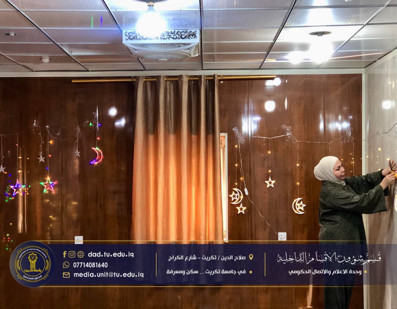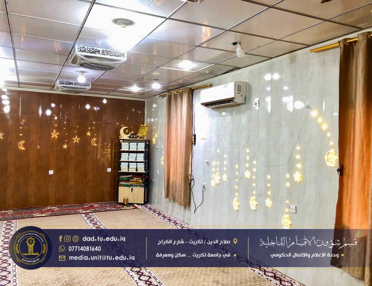 باشرت شعبة البحث الاجتماعي أعمالها الخدمية والإنسانية في إطار الاستعدادات لشهر رمضان المبارك، حيث أكملت الشعبة متمثلة بالباحثة نغم عبدالرزاق تجهيز المصلى الخاص بالطالبات في قسم (4) للطالبات (الطبية والتربية بنات)، وذلك ضمن الجهود المبذولة لتهيئة الأجواء الإيمانية المناسبة داخل المجمعات السكنية.