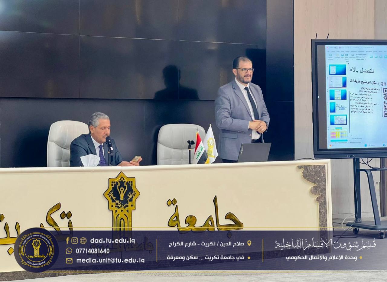 برعاية الأستاذ الدكتور وعد محمود رؤوف رئيس جامعة تكريت، وبتوجيه من الأستاذ الدكتور جاسم عباس علي مدير قسم شؤون الأقسام الداخلية، شارك كلٌّ من السيد سامال سعدي عبدالله مدير وحدة ضمان الجودة والأداء الجامعي، والسيد أحمد فائق أحمد مدير وحدة الإعلام والاتصال الحكومي، في الورشة العلمية الموسومة “ترميز بنايات الجامعة” التي أُقيمت على قاعة الخوارزمي.