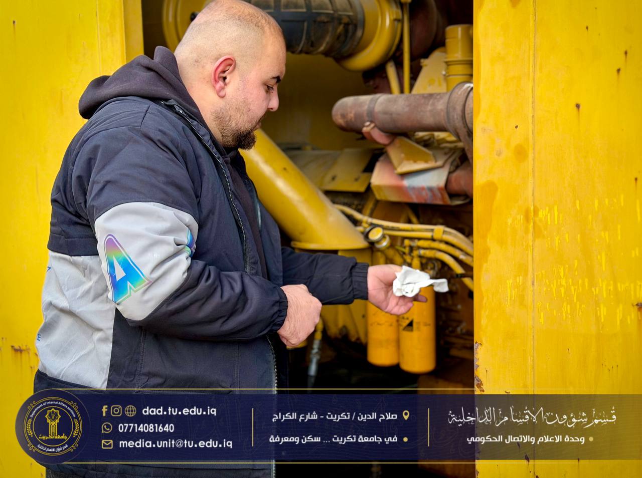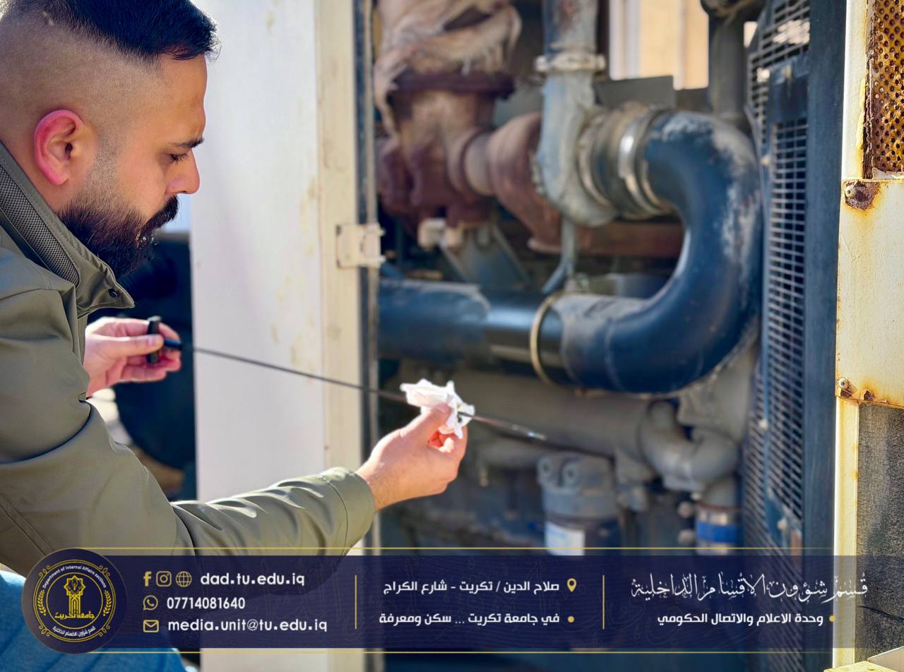 تواصل وحدة المولدات التابعة لشعبة الصيانة جهودها الحثيثة في متابعة تشغيل وصيانة المولدات الكهربائية في مختلف المجمعات السكنية، وبإشراف مباشر من مسؤول الشعبة السيد -همام نزهان محمد- وذلك لضمان استمرارية التيار الكهربائي وتوفير بيئة خدمية مستقرة للطلبة.