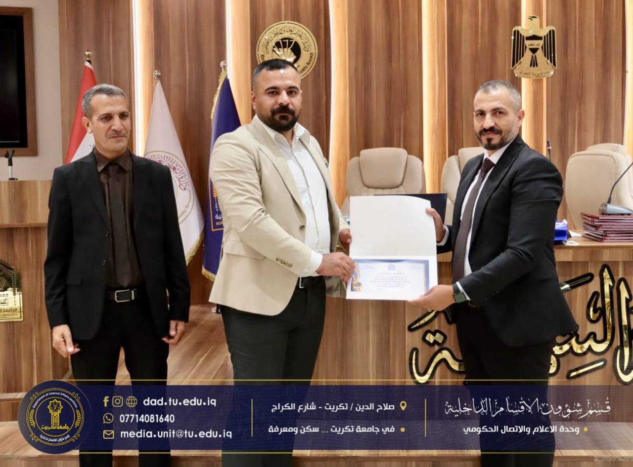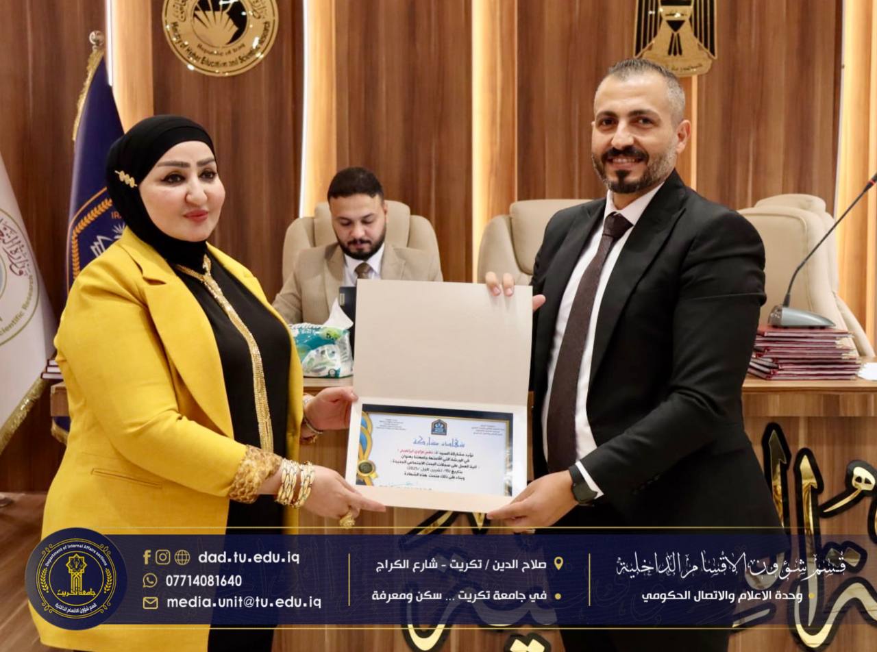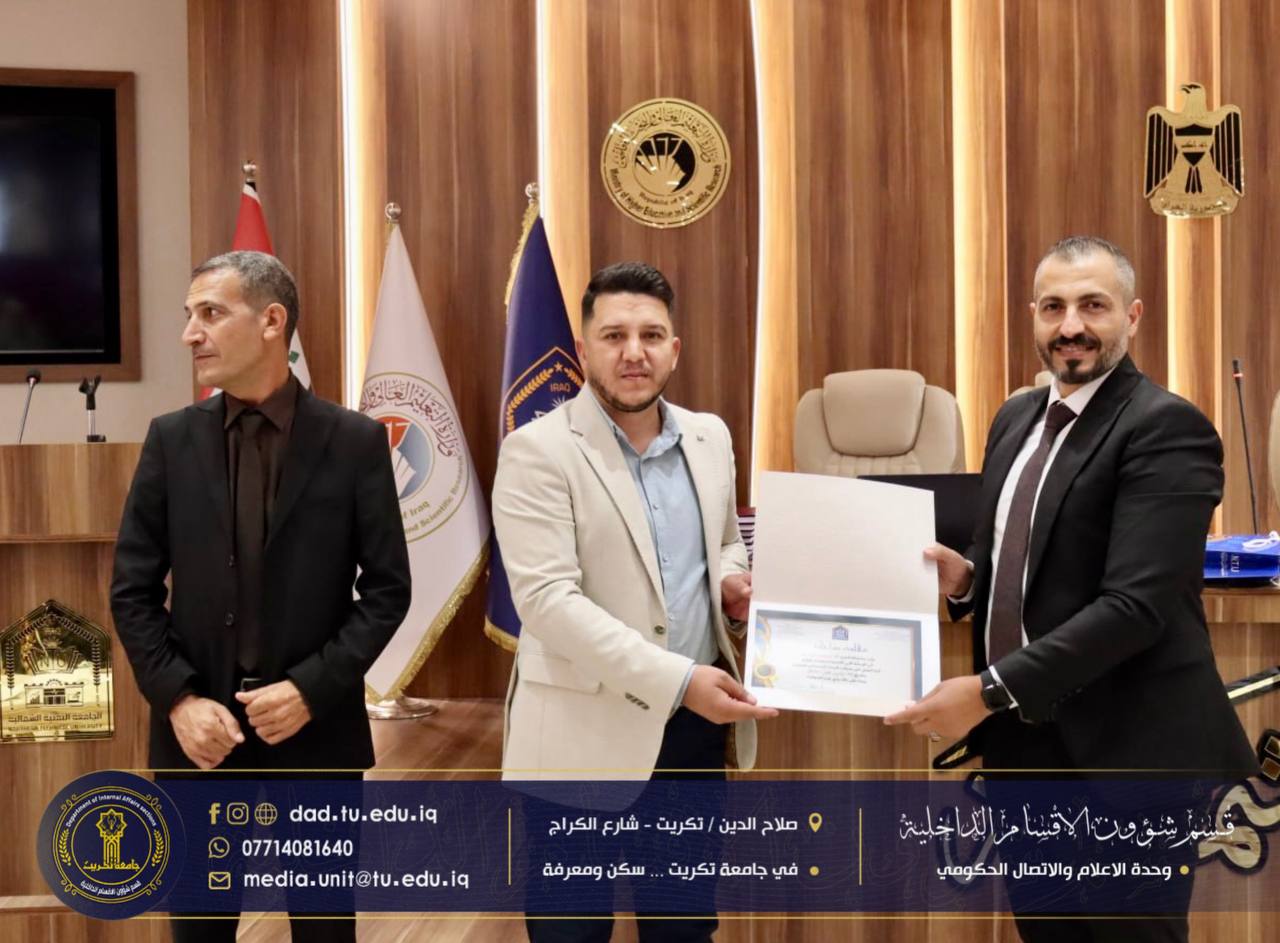 تكريم كادر شعبة البحث الاجتماعي بجامعة تكريت بجائزة التميّز على مستوى الجامعات العراقية